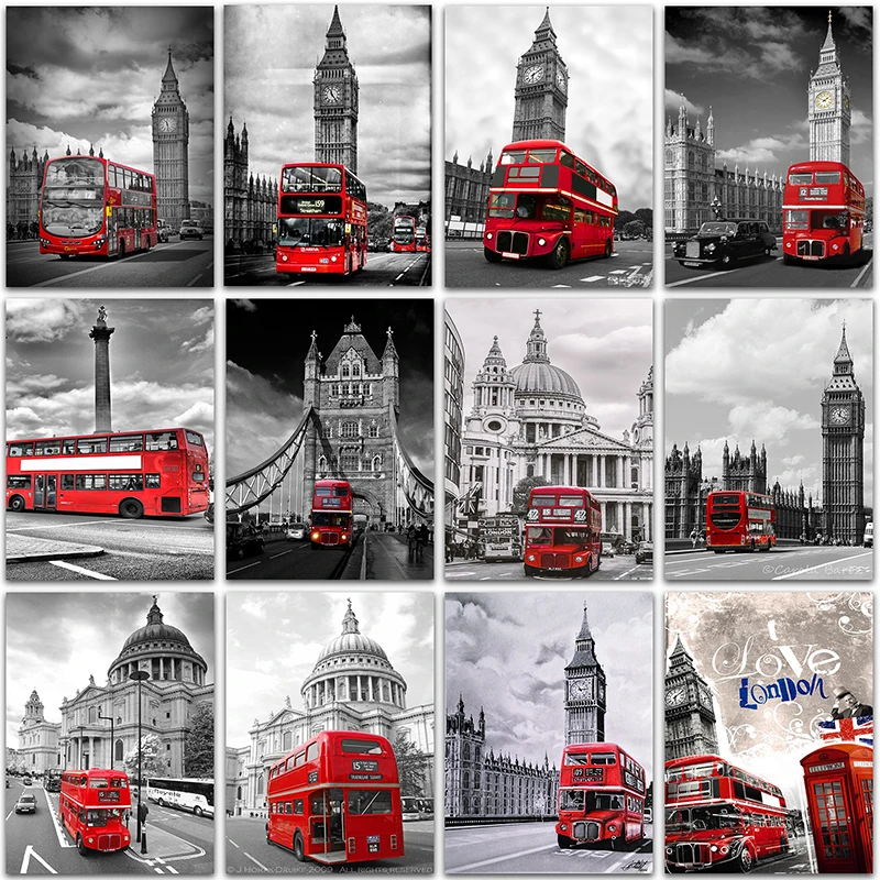 Набор для алмазной живописи 5D сделай сам, картина с изображением Эйфелевой башни, Красного автомобиля, автобуса, полноразмерная и круглая мозаика для домашнего декора, вышивка крестиком