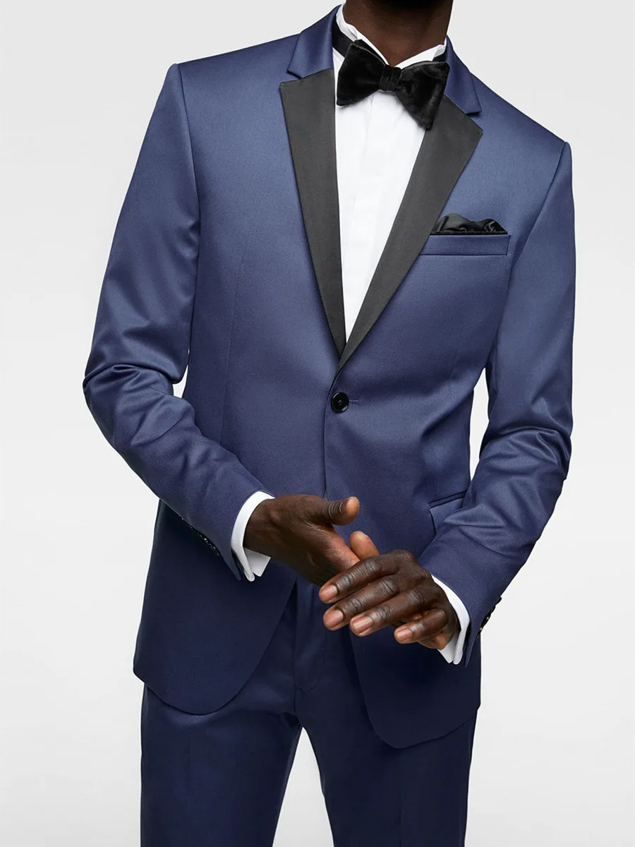 Темно-синийчерныйкоролевский синий смокинг для шафера, шаль для жен...