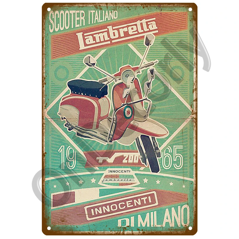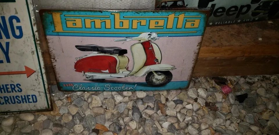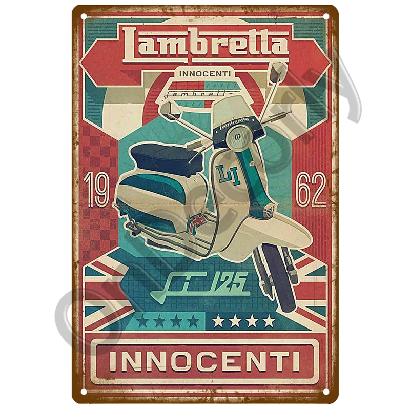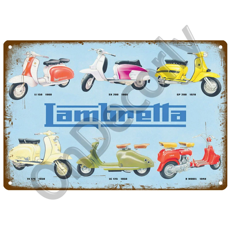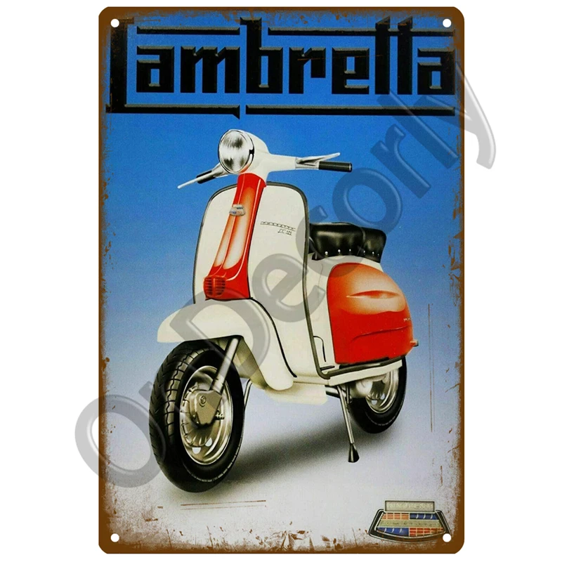 Lambretta мотор доска Металл Винтаж жестяная вывеска потертый Шикарный декор винтажные металлические знаки Винтаж бар украшение из металла плакат паб металлическая пластина