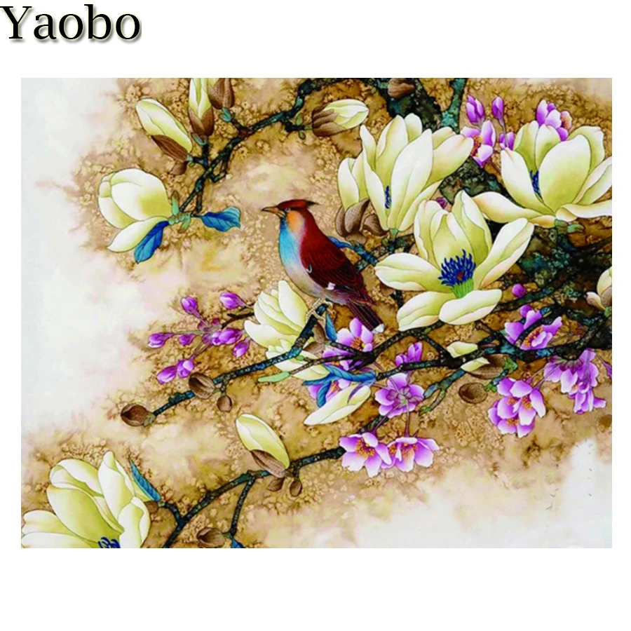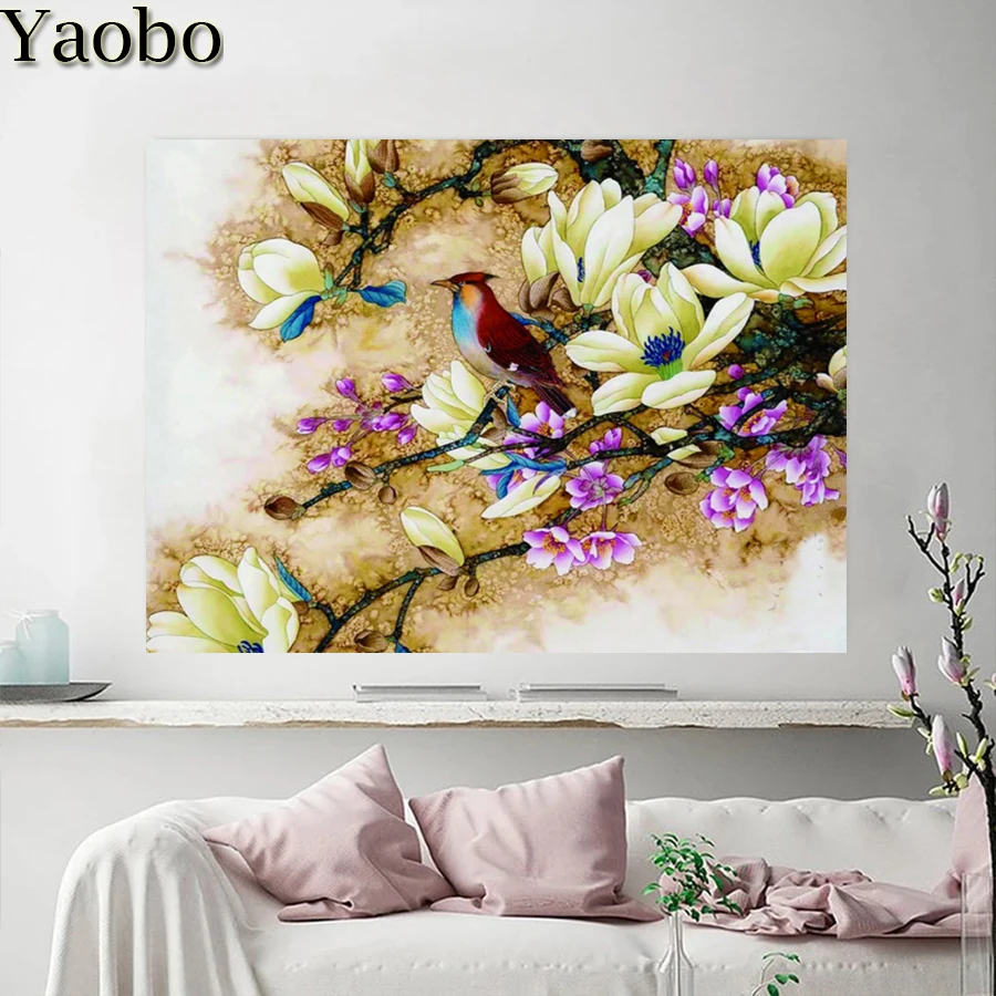 5D алмазная картина с магнолией цветок птица мозаика Стразы наборы ручной работы Рукоделие Вышивка крестом Алмазная вышивка головоломка Декор