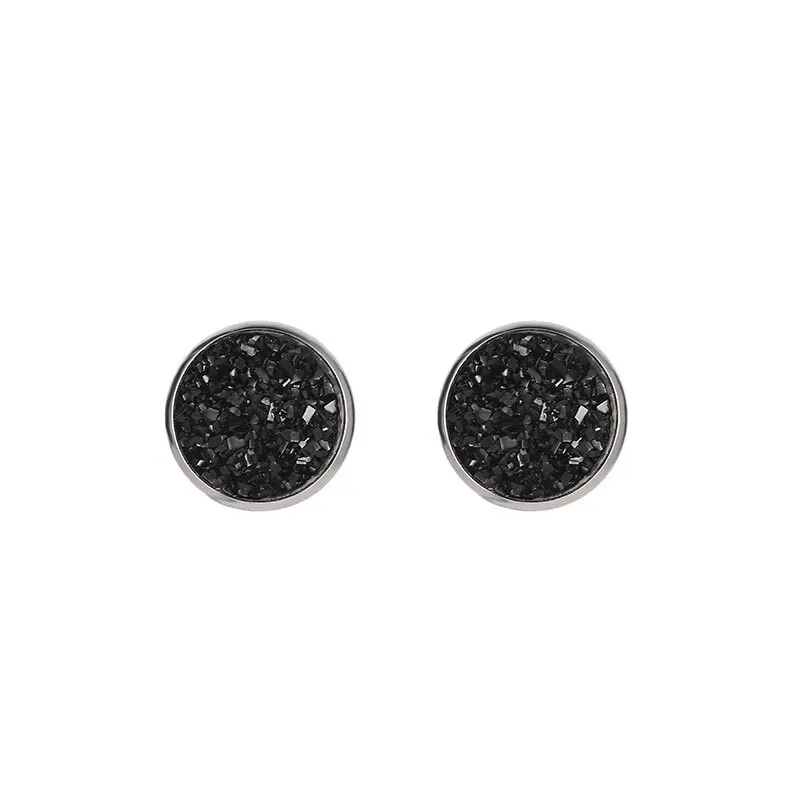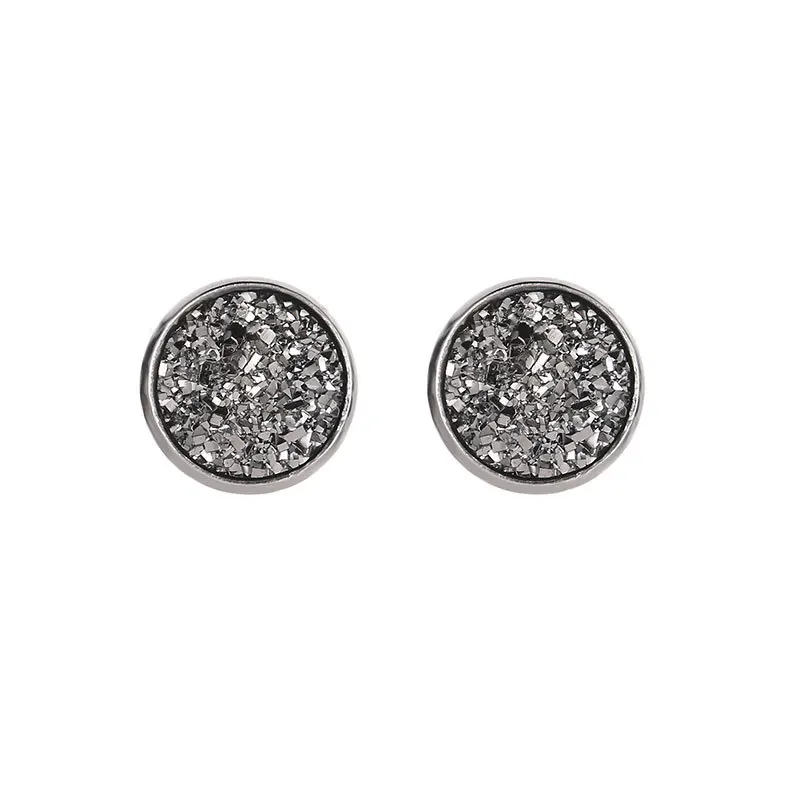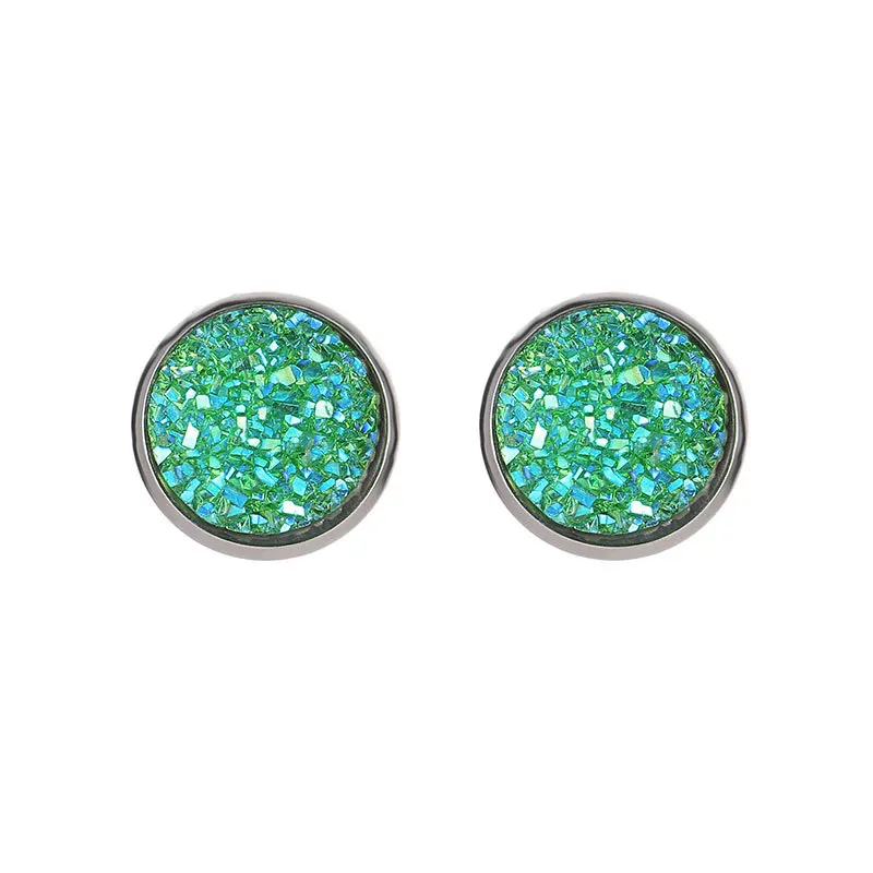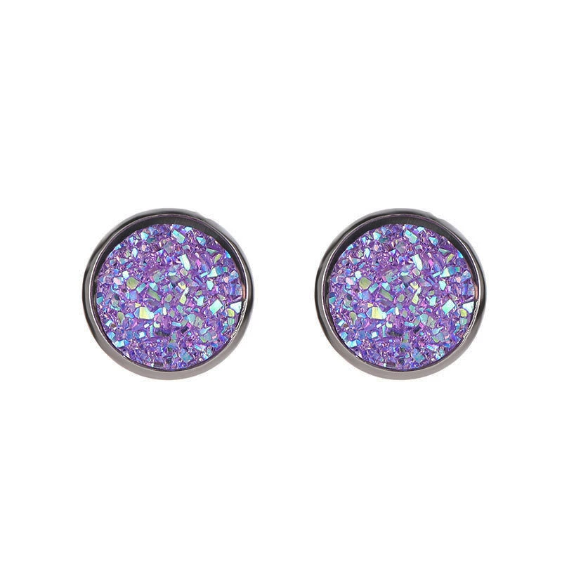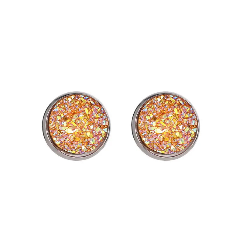 Женские круглые серьги-гвоздики, с необработанными друзами разных ц...