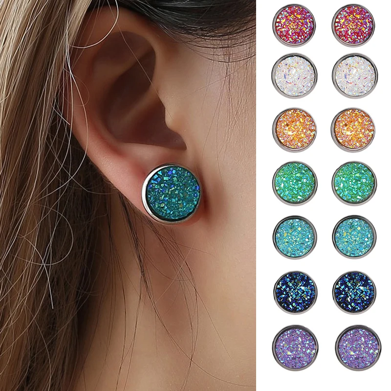 Дробленый с украшением в виде кристаллов Сияющие очаровательные Разноцветные серьги для девушек и девочек простой Lewelry женские маленькие круглые простые шпильки 2021 Новый