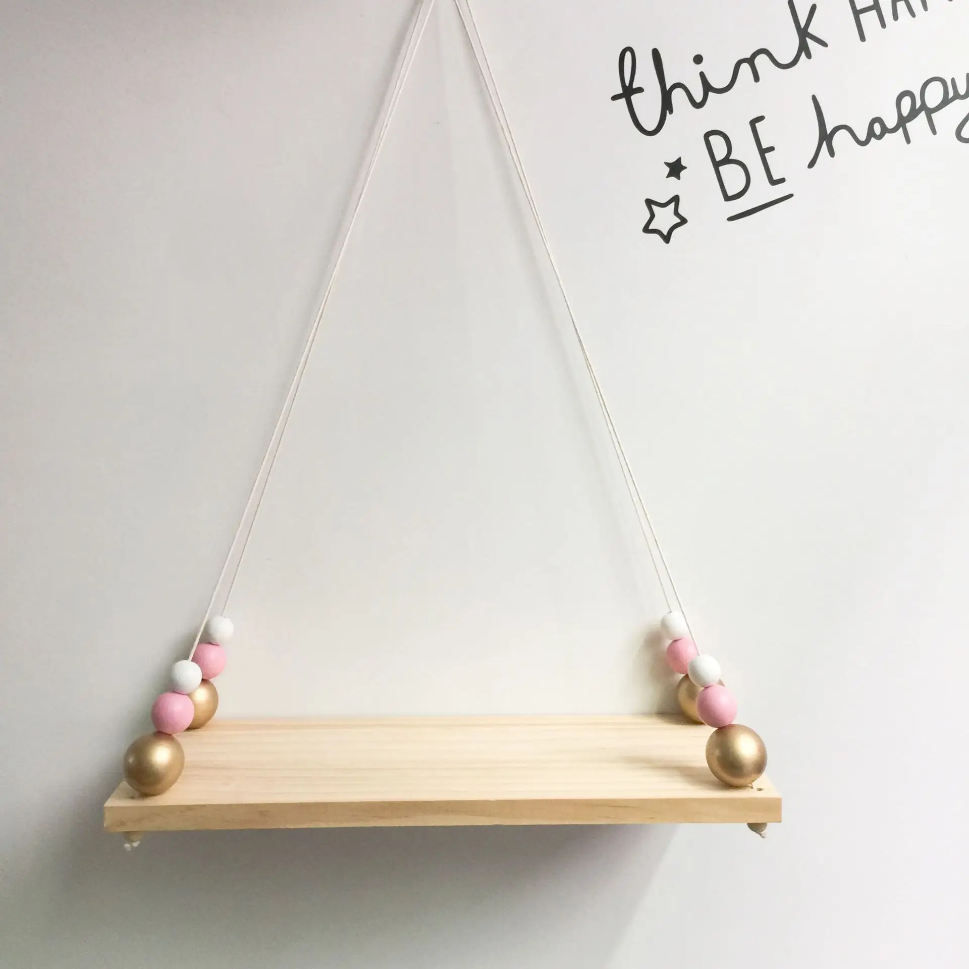 Деревянные стеллажи для хранения в скандинавском стиле, милые декоративные настенные полки для детской комнаты с бусинами и кисточками, декоративная полка для девичьей комнаты