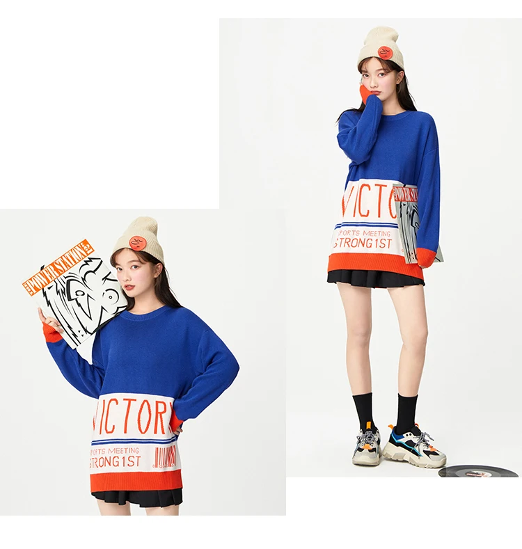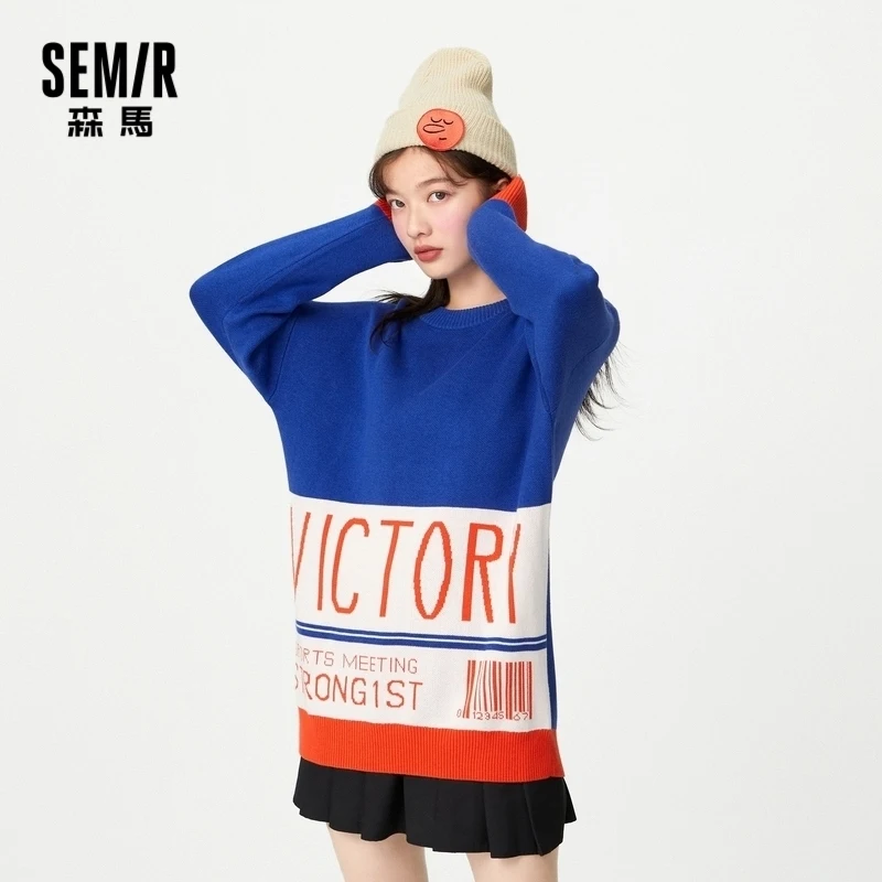 Женский Длинный свитер SEMIR в гонконгском стиле ретро, вязаный свитер для осени и зимы, свободная куртка, Осенний жаккардовый свитер с узором