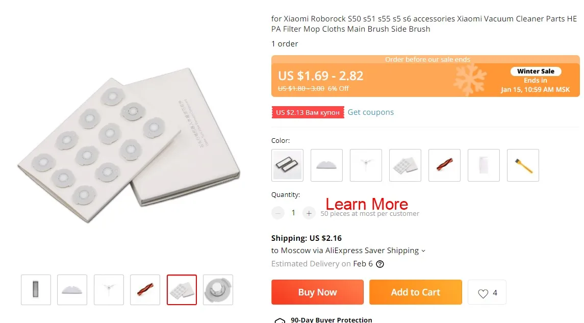 Моющиеся тряпки для пылесоса Xiaomi roborock S 5, 6, 50, 51, 52, 55...
