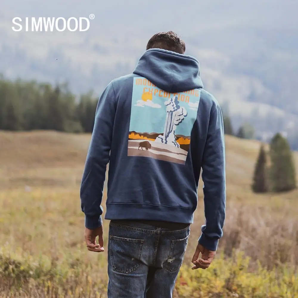 Толстовка SIMWOOD с флисовой подкладкой, зимняя, теплая, с принтом на спине, размера плюс