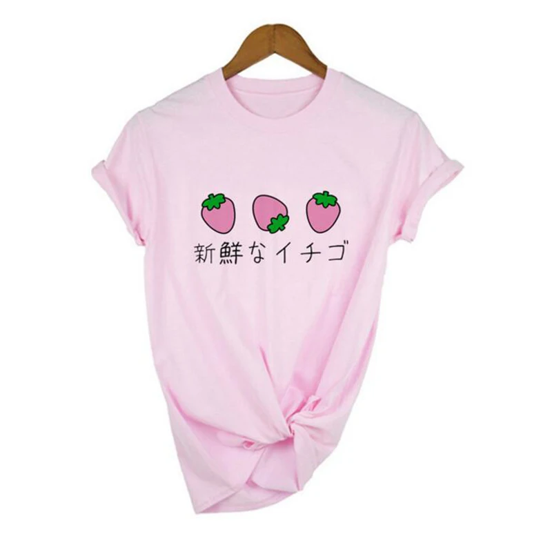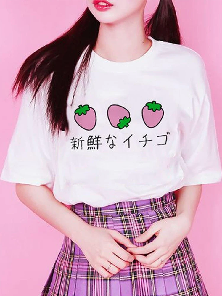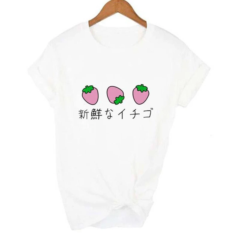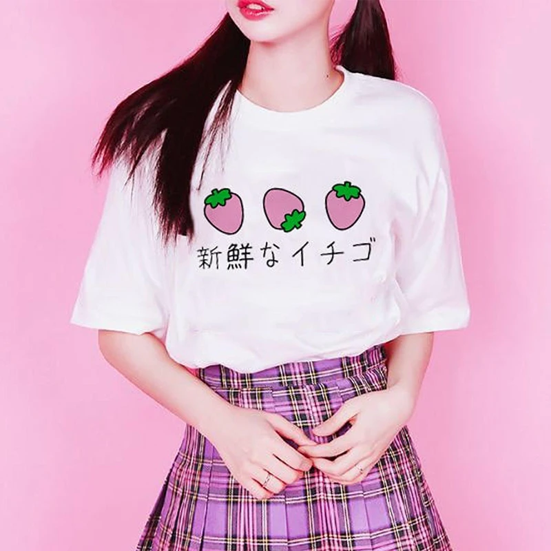 Милая женская футболка с принтом клубники, летняя Модная белая хлопковая футболка в японском стиле, футболка в стиле Харадзюку, кавайная Одежда для девочек