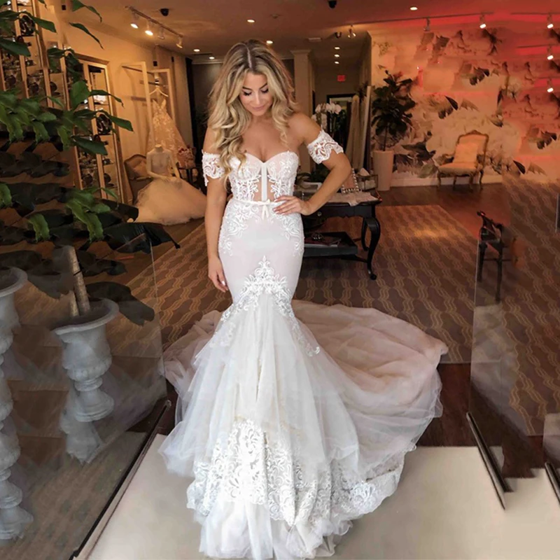 Сексуальное кружевное свадебное платье-русалка, 2021, пляжное платье невесты, с открытыми плечами, неформальное, скромное, богемные свадебные платья, с открытой спиной