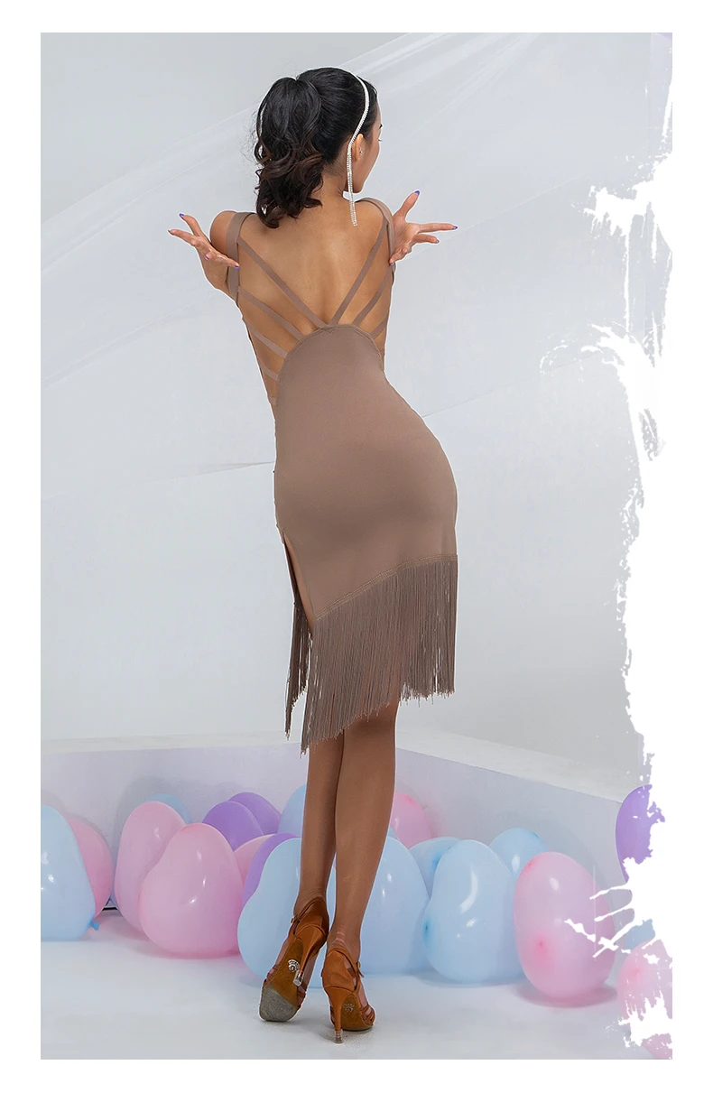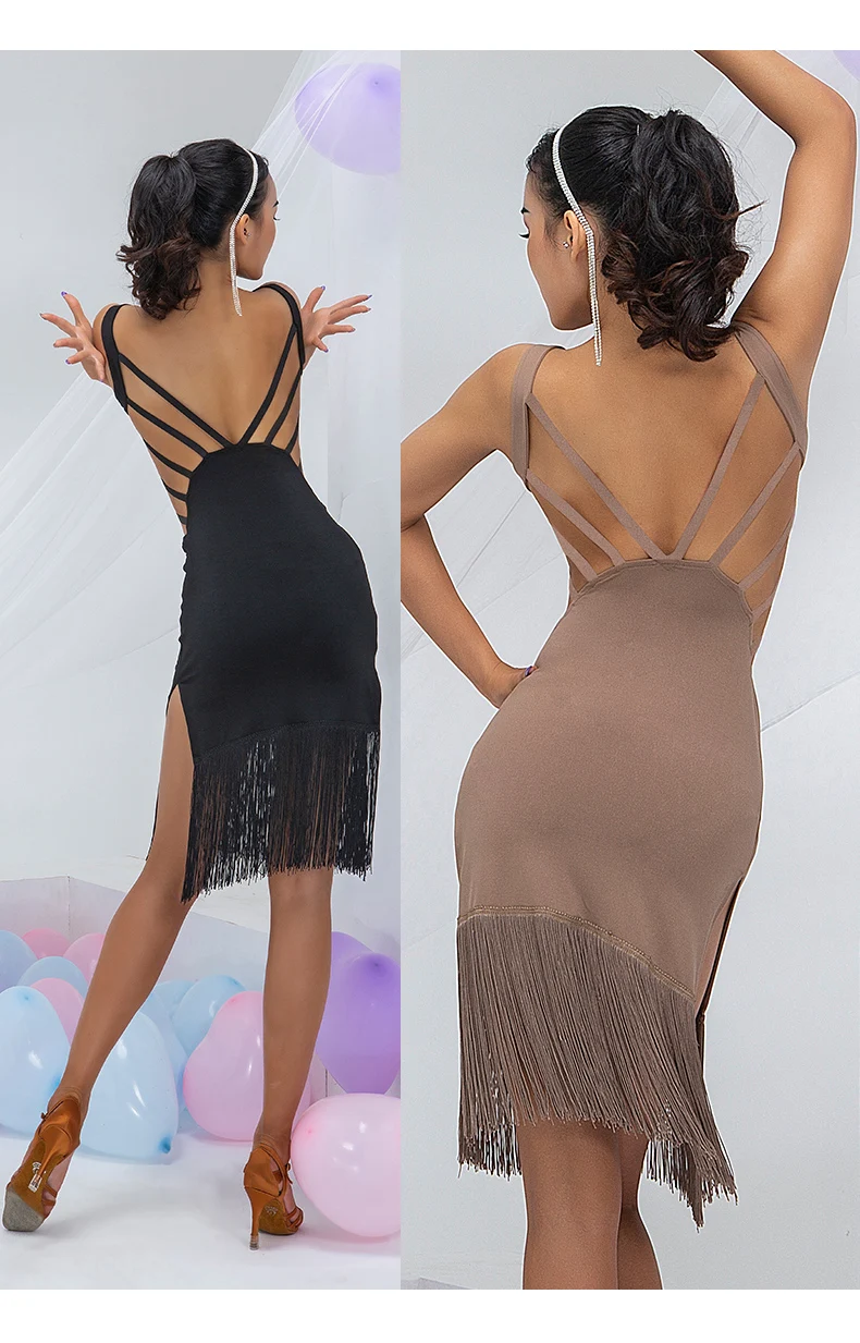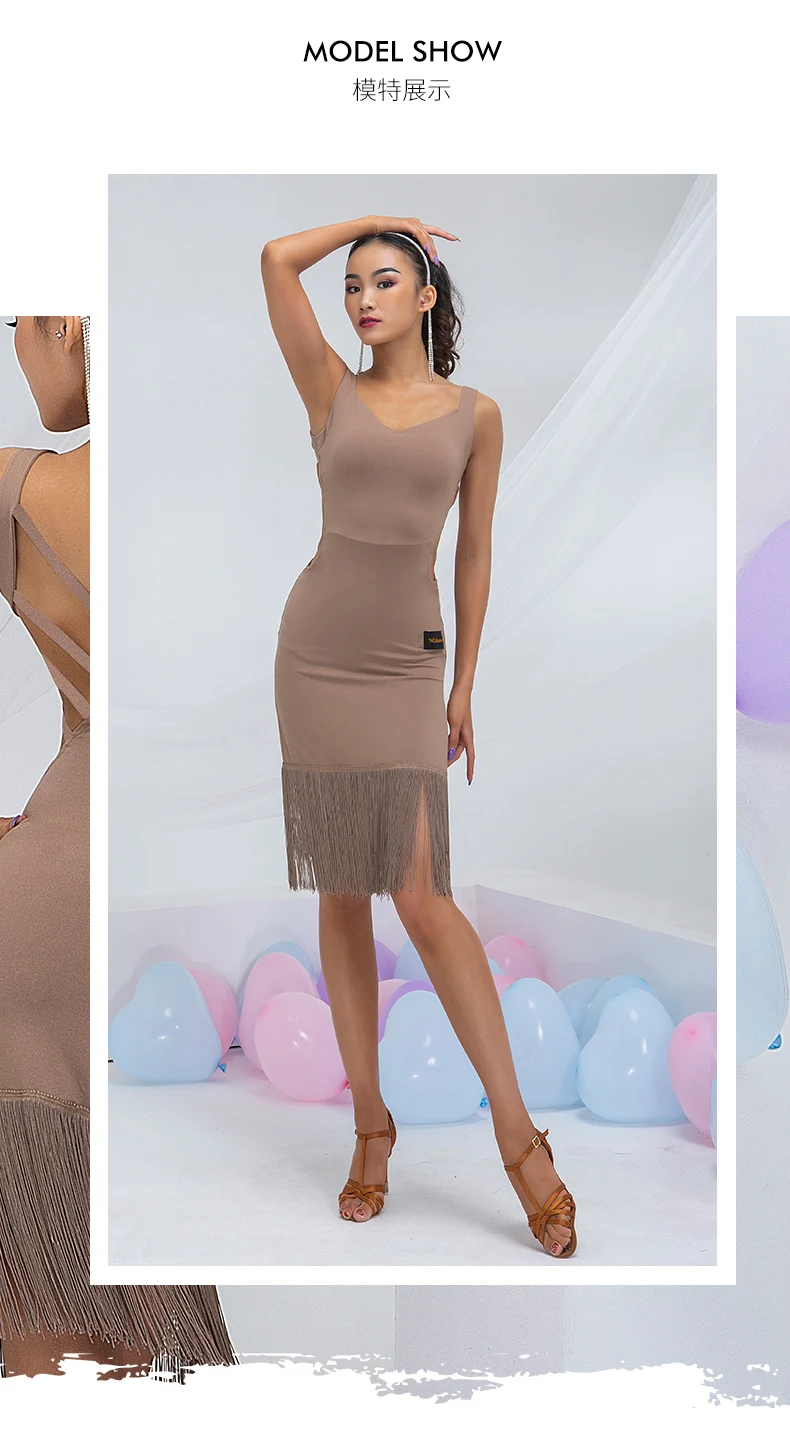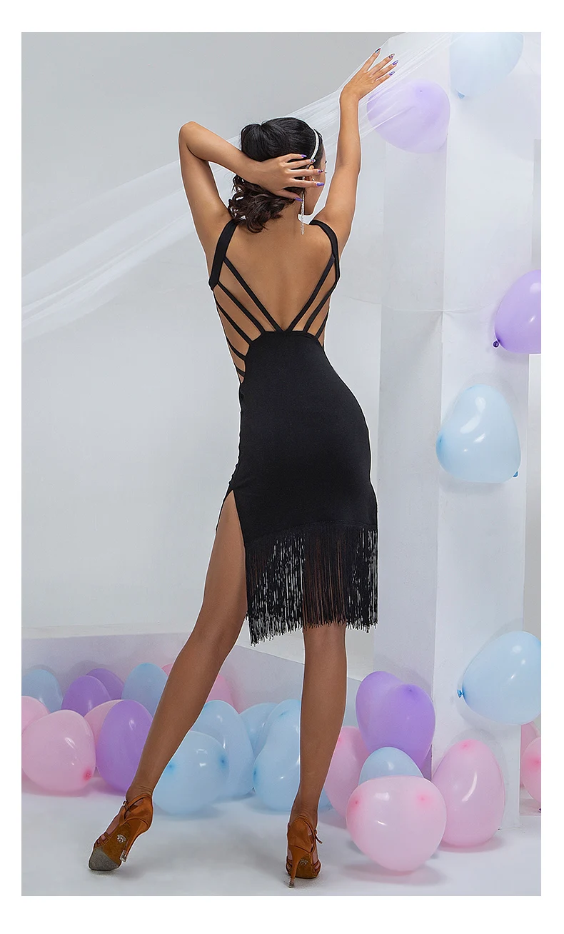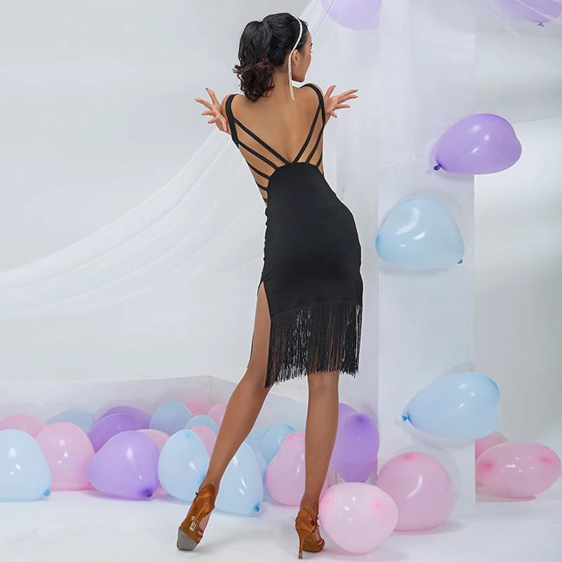 Женское платье для соревнований по латиноамериканским танцам, черное сексуальное платье с бахромой, одежда для латинских танцев без рукавов, одежда для выступлений DNV14854