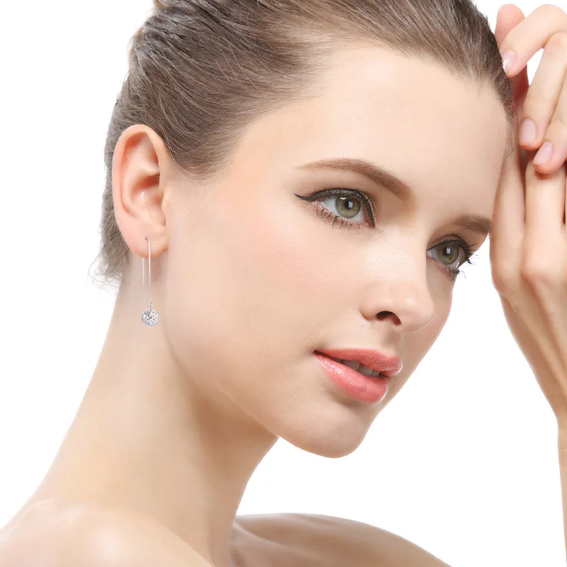 Простые и универсальные серьги SA SILVERAGE из стерлингового серебра 925 пробы, полые серьги с длинным шариком, серьги-подвески геометрического типа