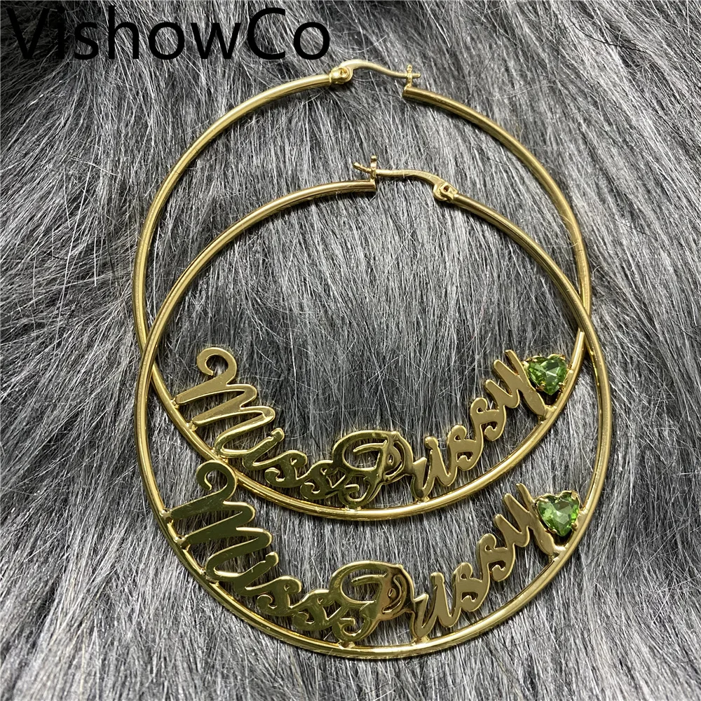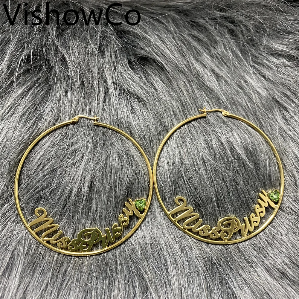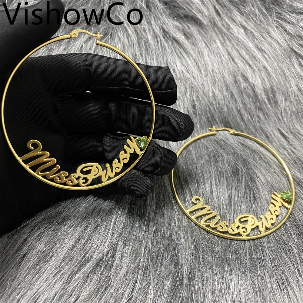 Висячие серьги с именем VishowCo, персонализированные круглые серьг...