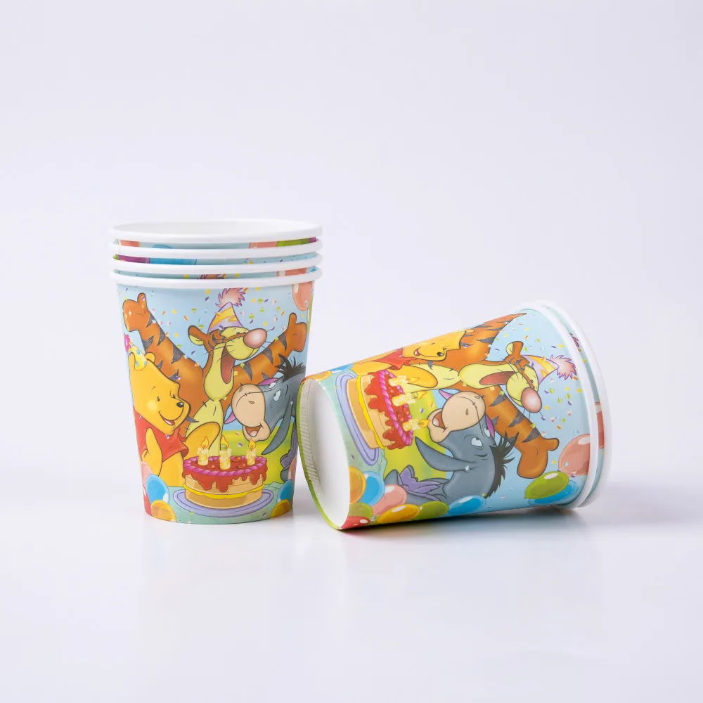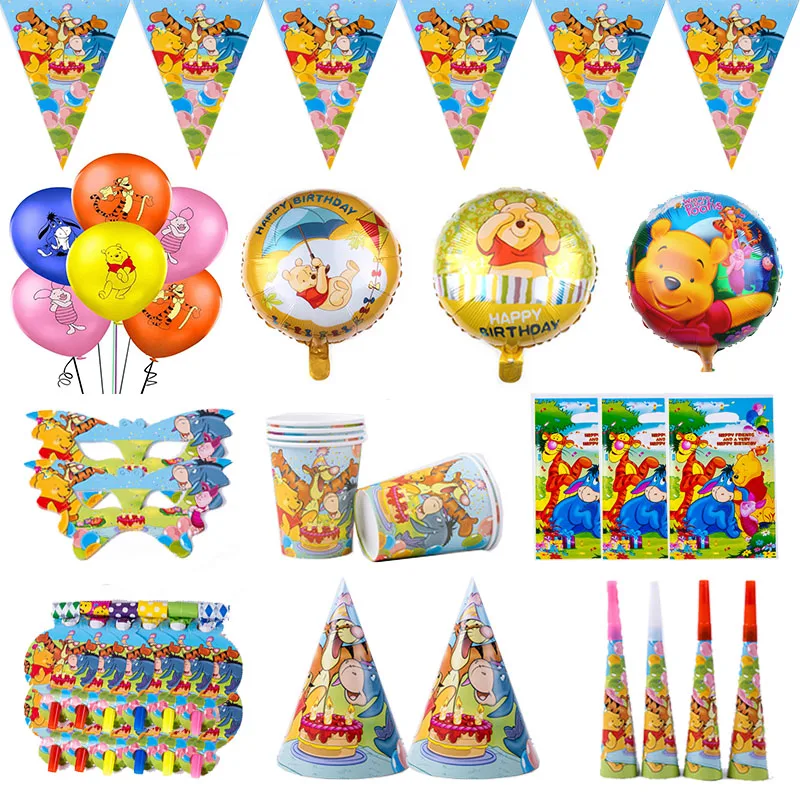 Мультяшные одноразовые столовые приборы с изображением Винни-Пуха для темативечерние, детская шапка, украшение для дня рождения, праздника для будущей мамы