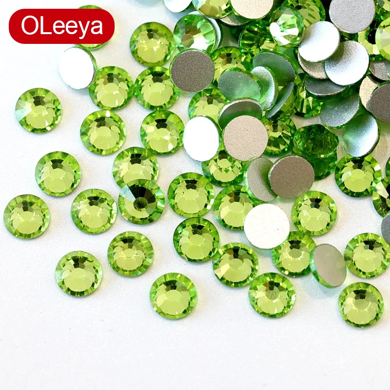 SS3-SS30 Lt Peridot хрустальные стразы для дизайна ногтей с плоской задней поверхностью прозрачные стразы без горячей фиксации клей для украшения ногтей OleeyaF0335