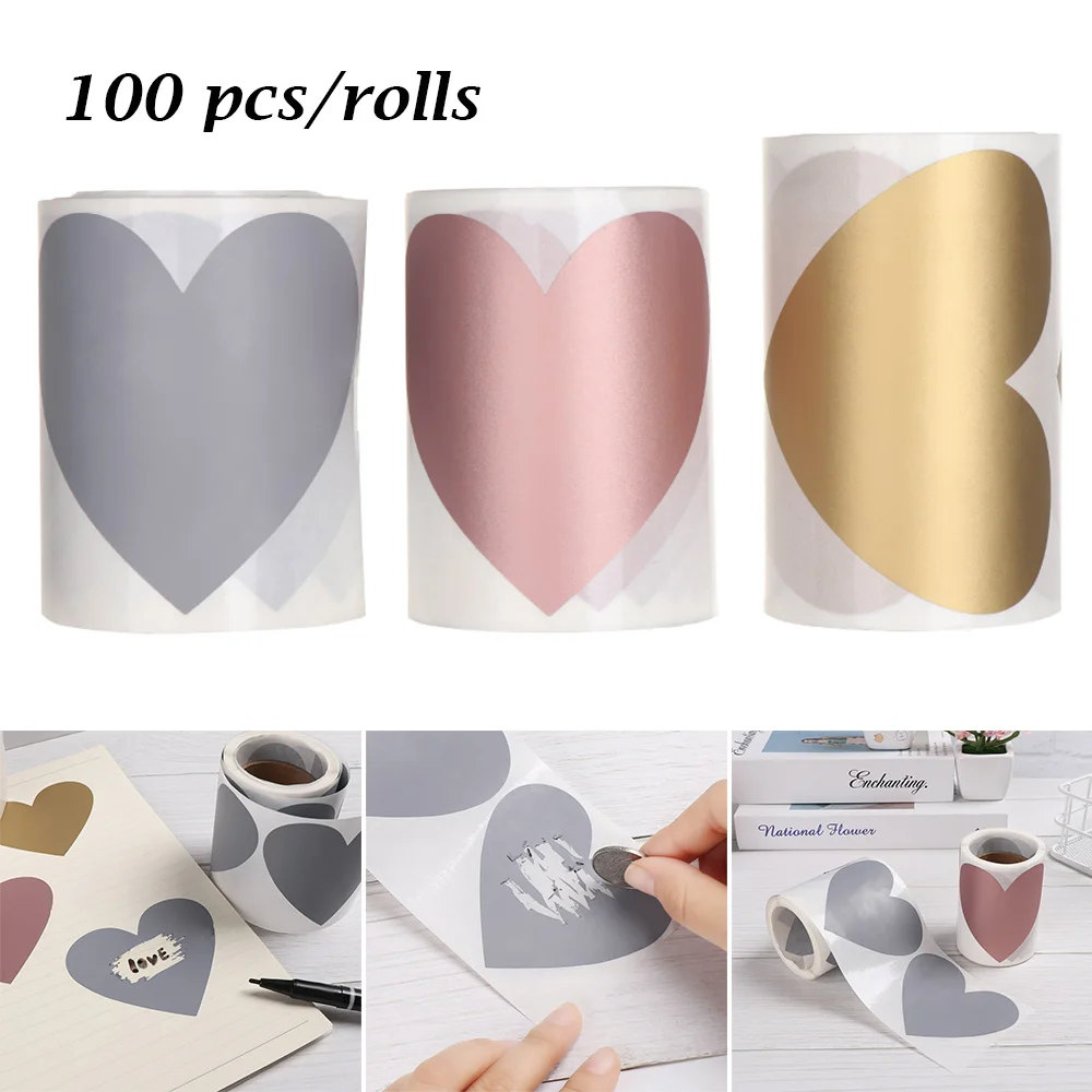 Наклейка в форме сердца с царапинами, стикеры с царапинами, наклейки для домашней игры, секретный кодовый чехол, свадебная карточка с сообщениями, 100 шт.