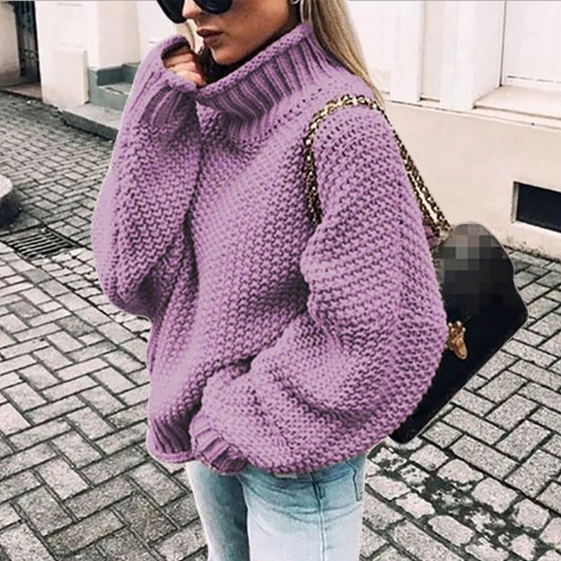 Женский трикотажный свитер с длинным рукавом и воротником летучая мышь
