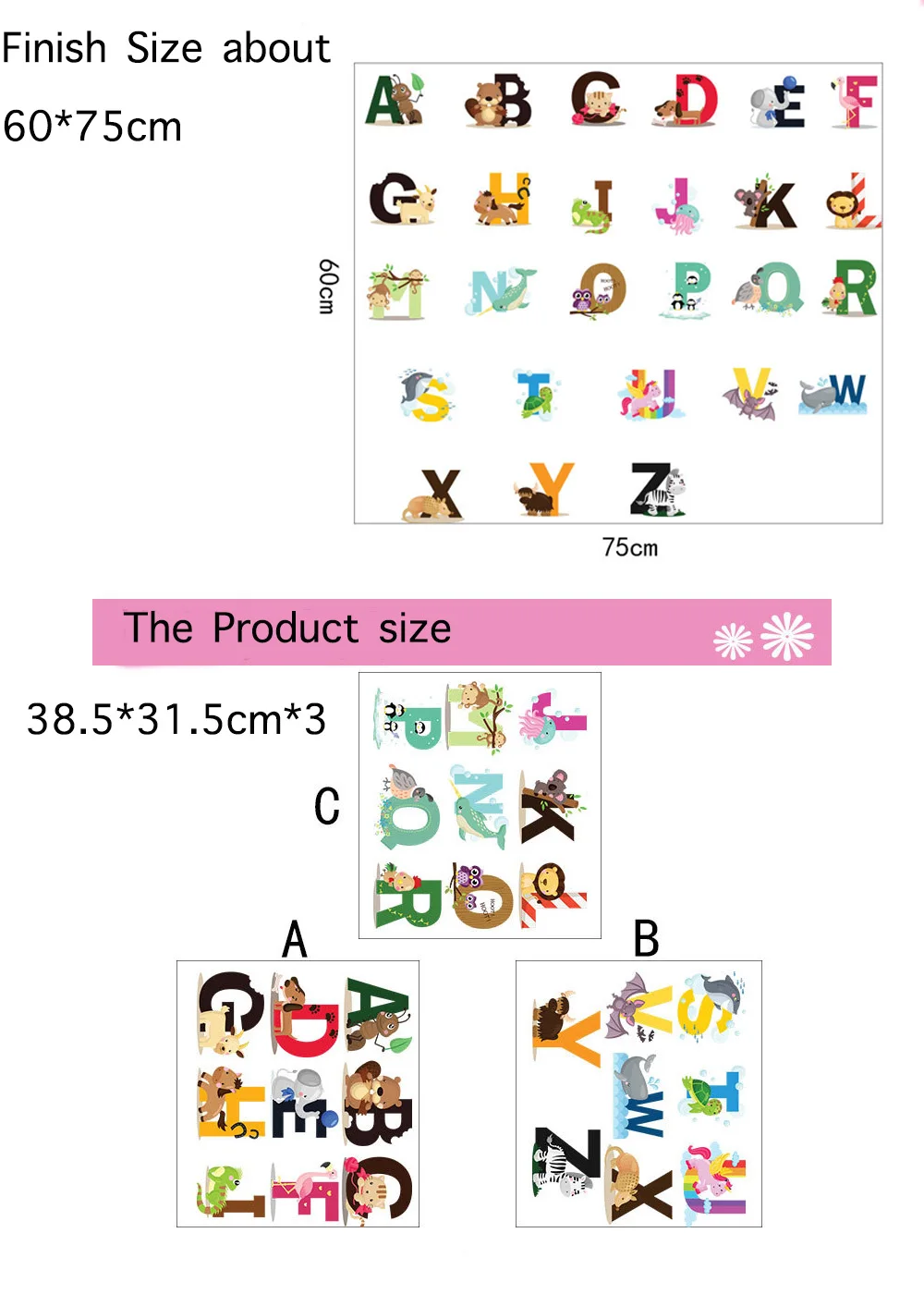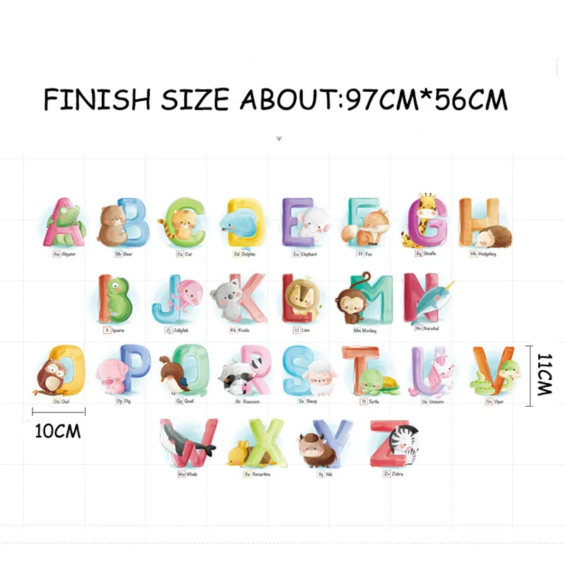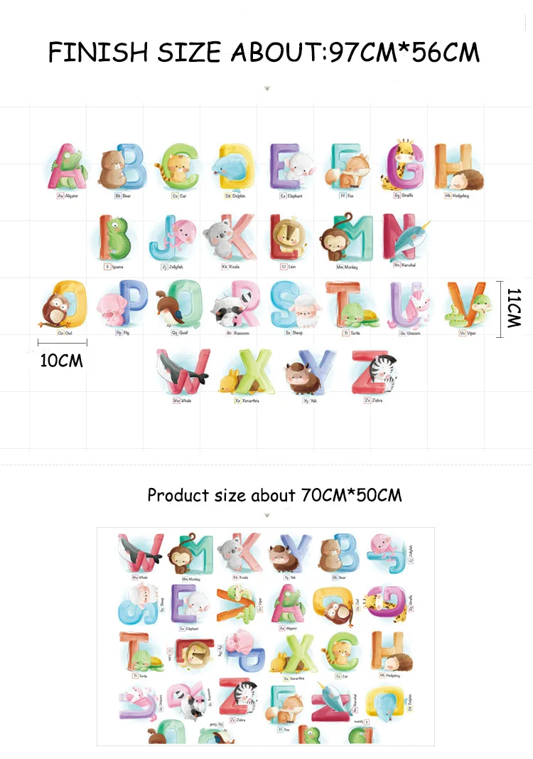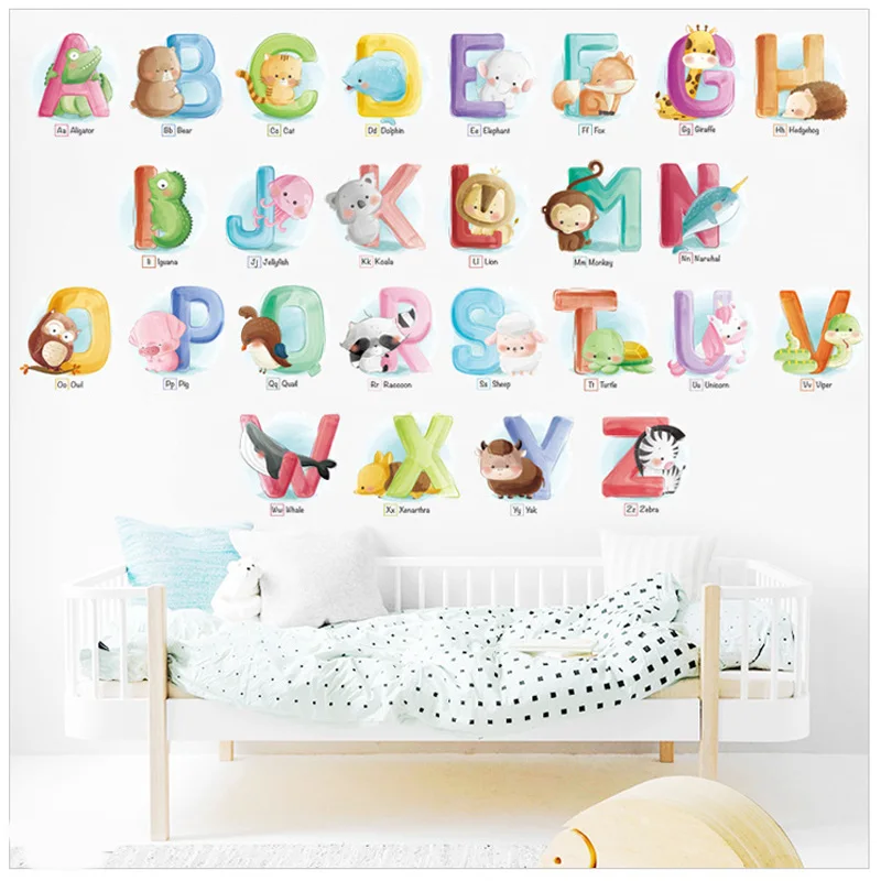 26 букв Алфавит Животные наклейки на стену