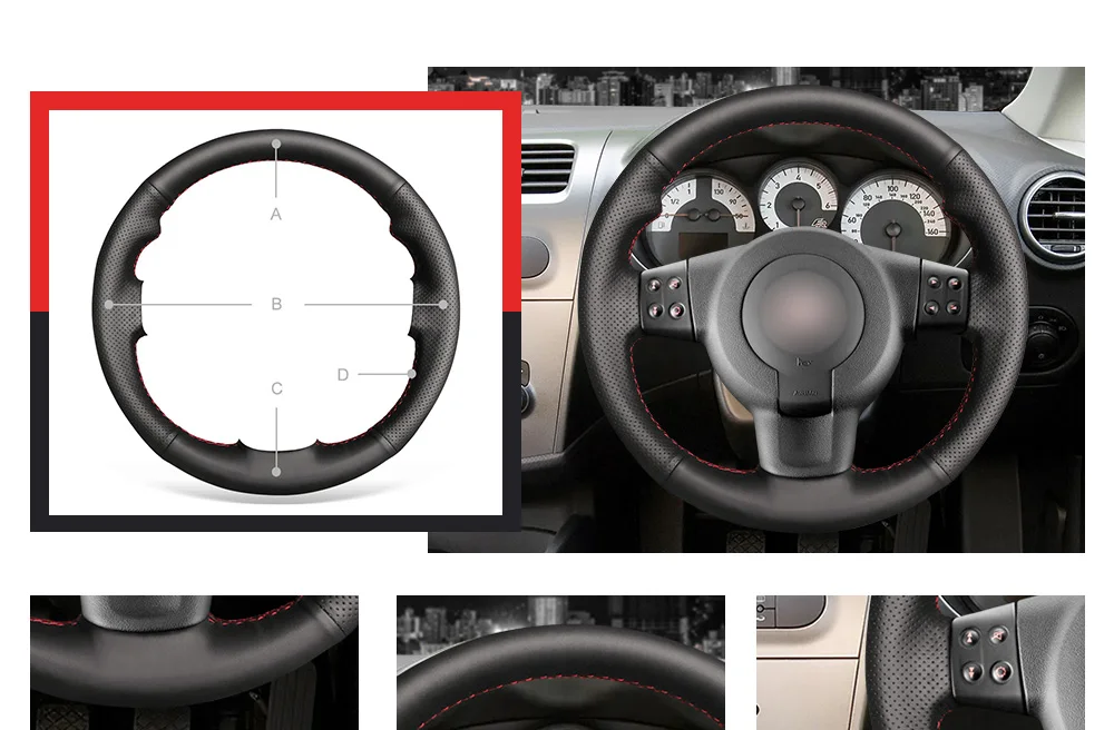 A + C: черная искусственная кожаB: черная перфорированная искусственная кожаD: Красная Нить