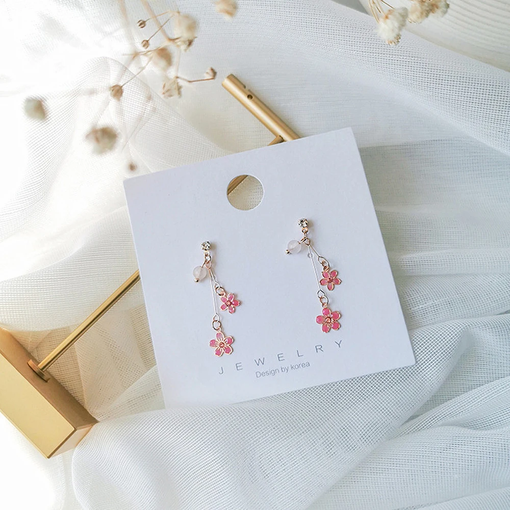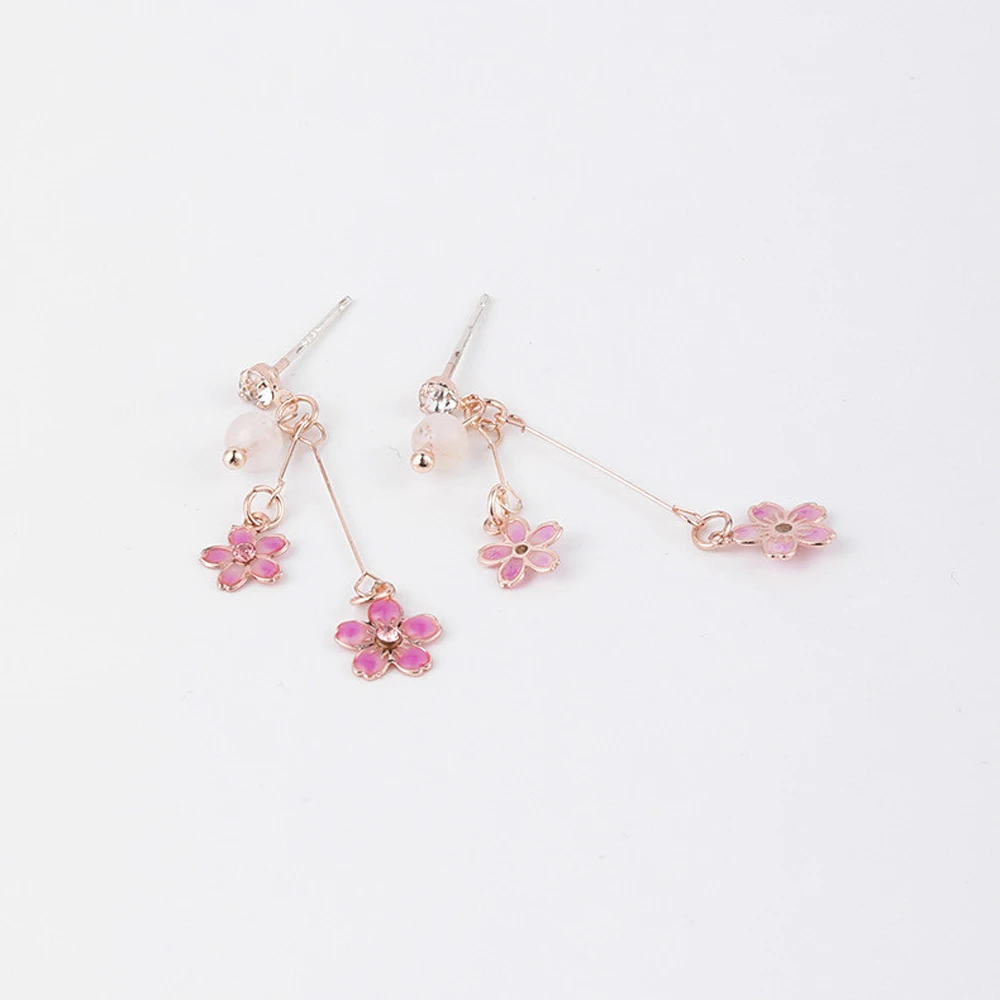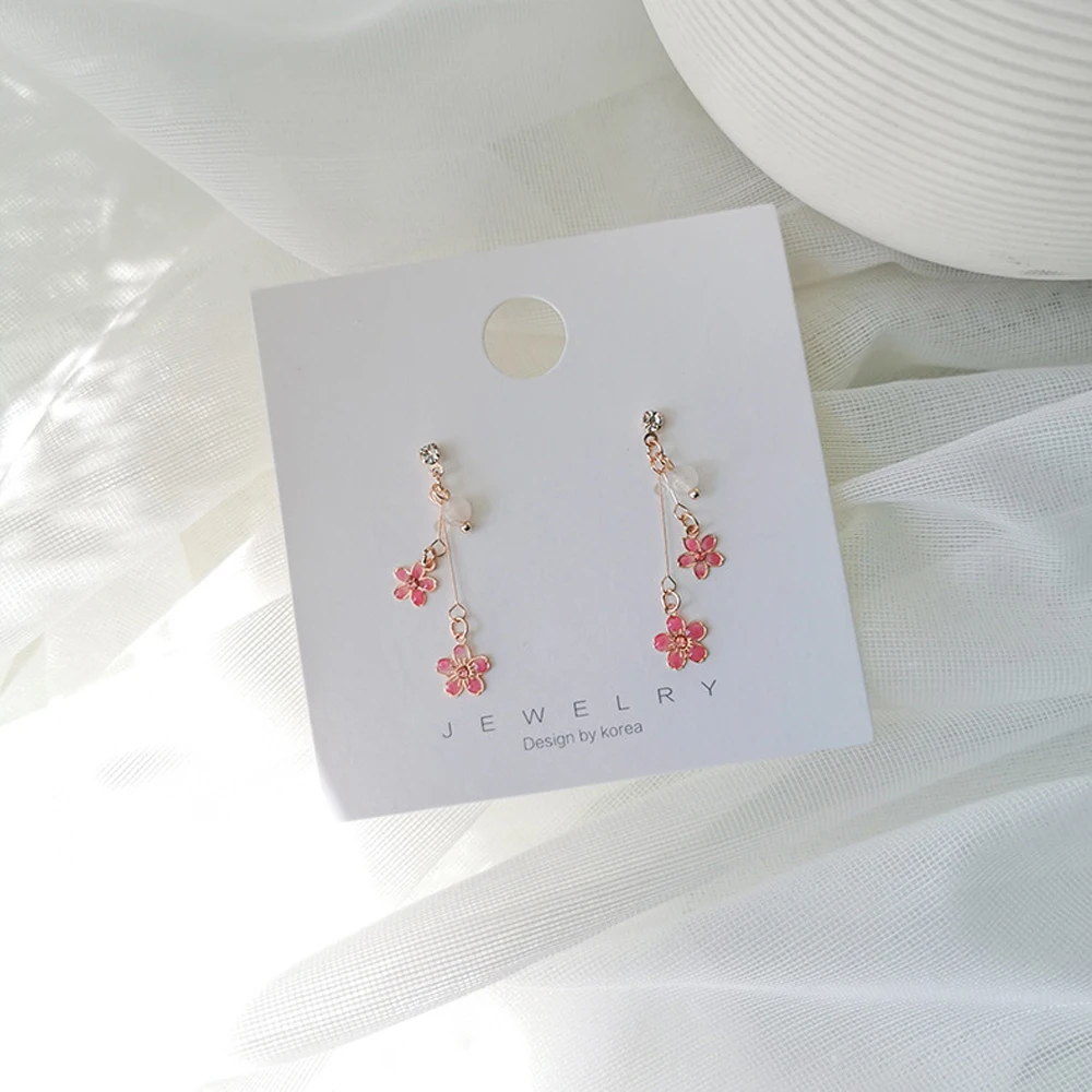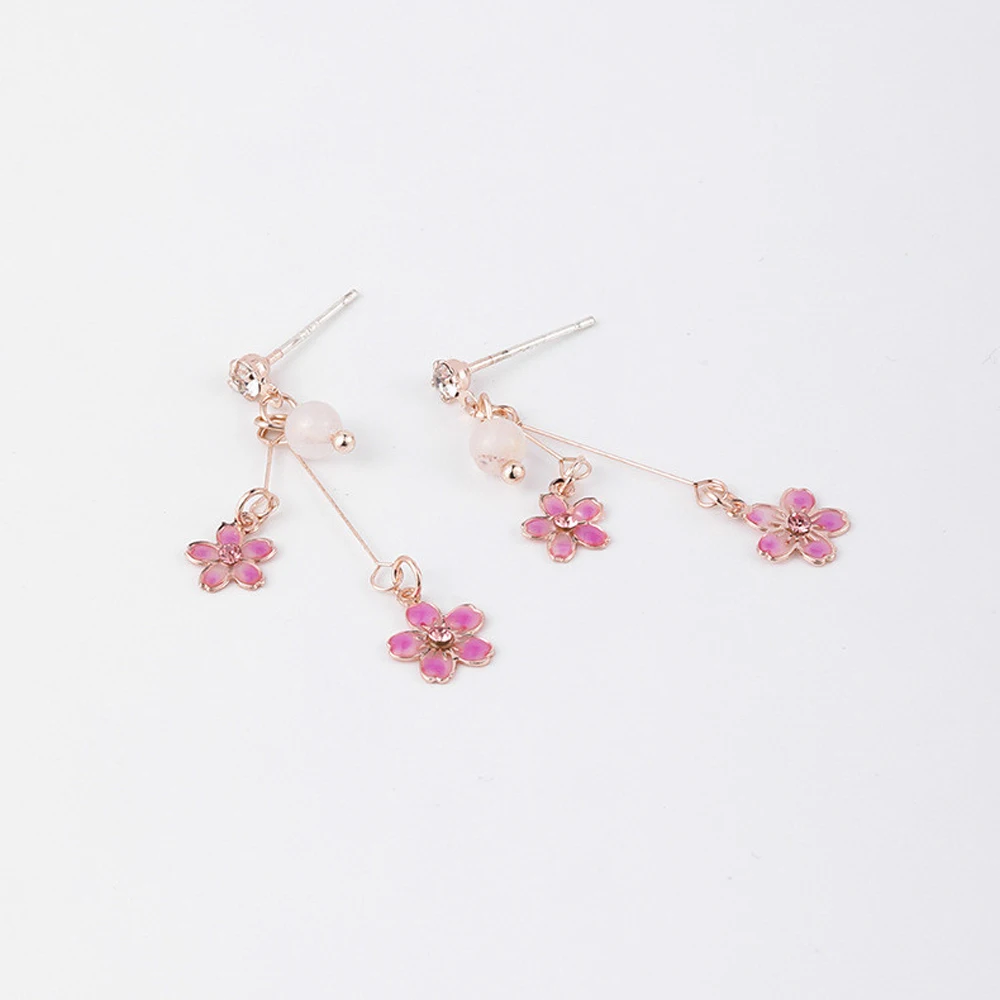 Серьги-гвоздики женские розовые с цветком и кисточкой