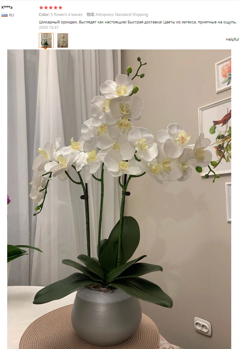 Композиция из больших искусственных орхидей, латексная, силиконовая, большого размера, без вазы, 1 комплект