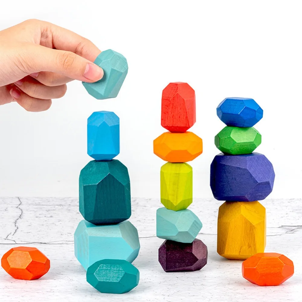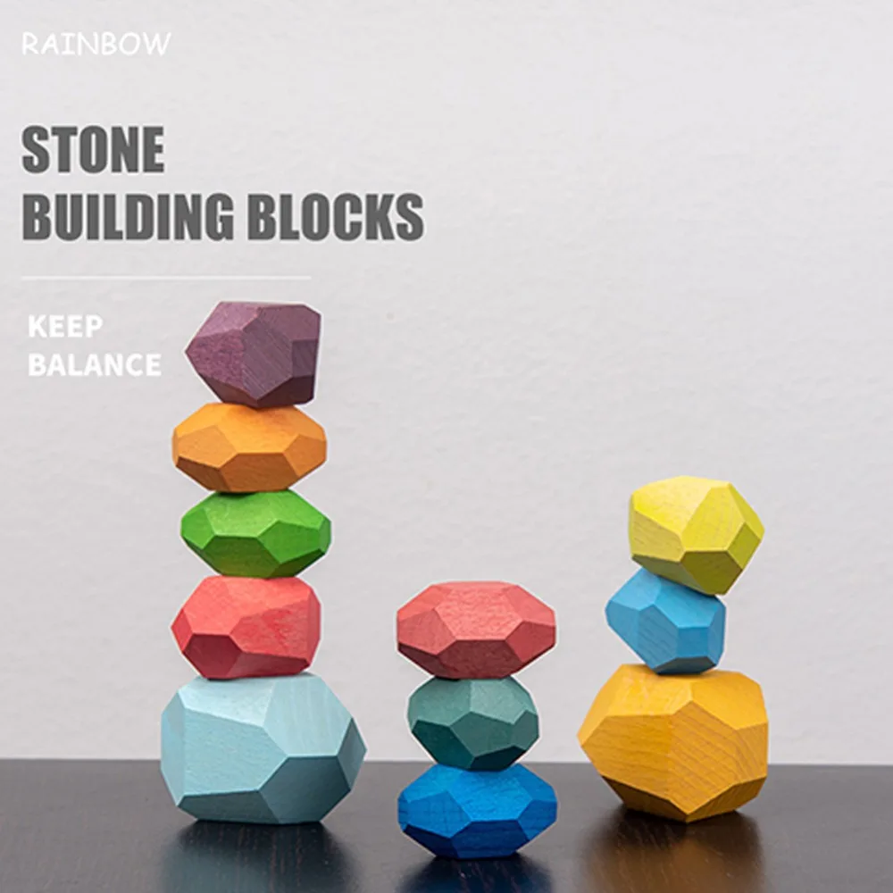 Строительный блок деревянная детская игрушка jenda, цветные камни, креативные Обучающие игрушки в скандинавском стиле, игра для укладки, Радужный камень, деревянная игрушка