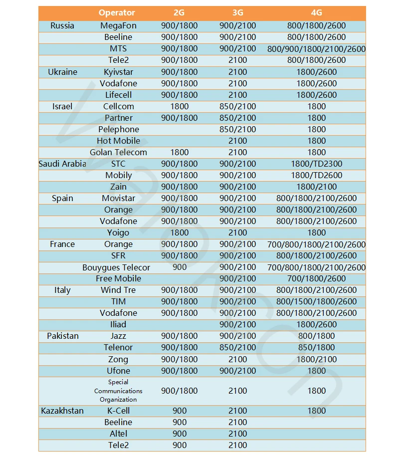 B8 = полоса 8 = 900 МГцB20 = полоса 20 = 800 МГцB3 = полоса 3 = 1800 МГцB1 = полоса 1 = 2100 МГц