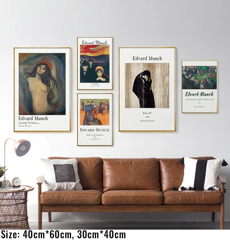 Всемирно известный Эдварда Munchтревога поцелуй Характеристическая вязкость полимера любящее Картина на холсте женщина Художественный принт постер на стену для Гостиная Спальня домашний декор