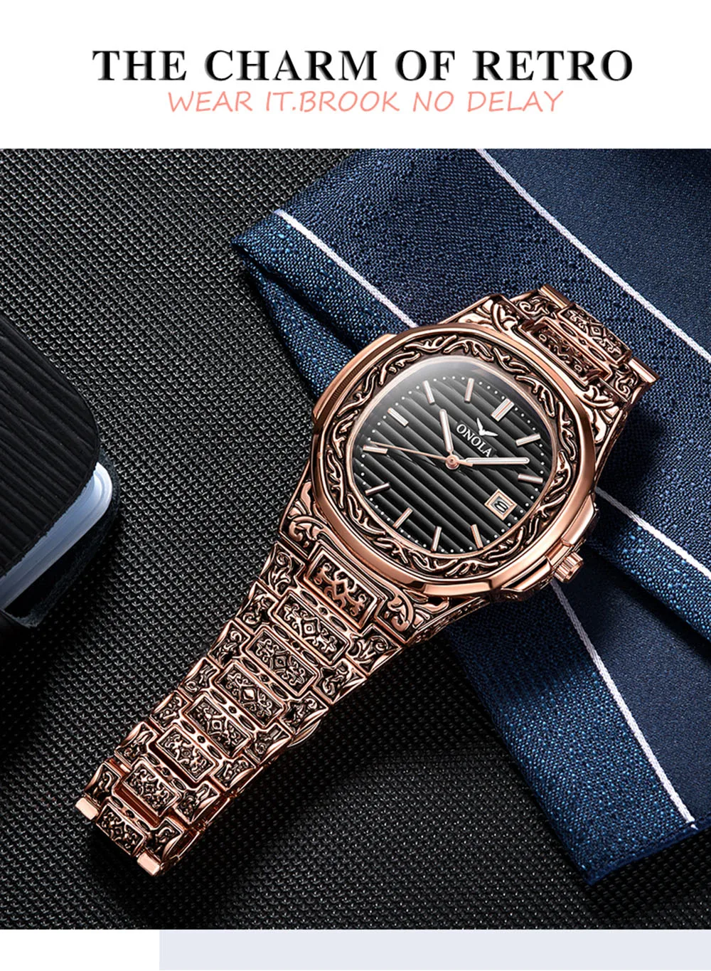 Мужские наручные часы ONOLA, роскошные медные часы из нержавеющей с...