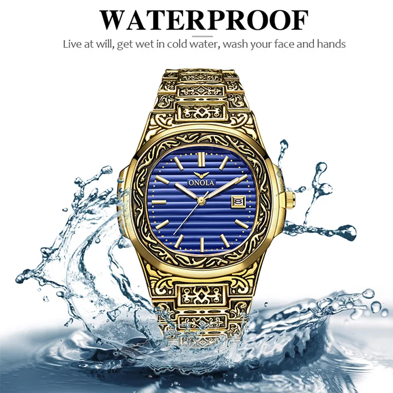 ONOLA мужские часы кварцевые часы бренд Top luxury Ретро золотые ча...