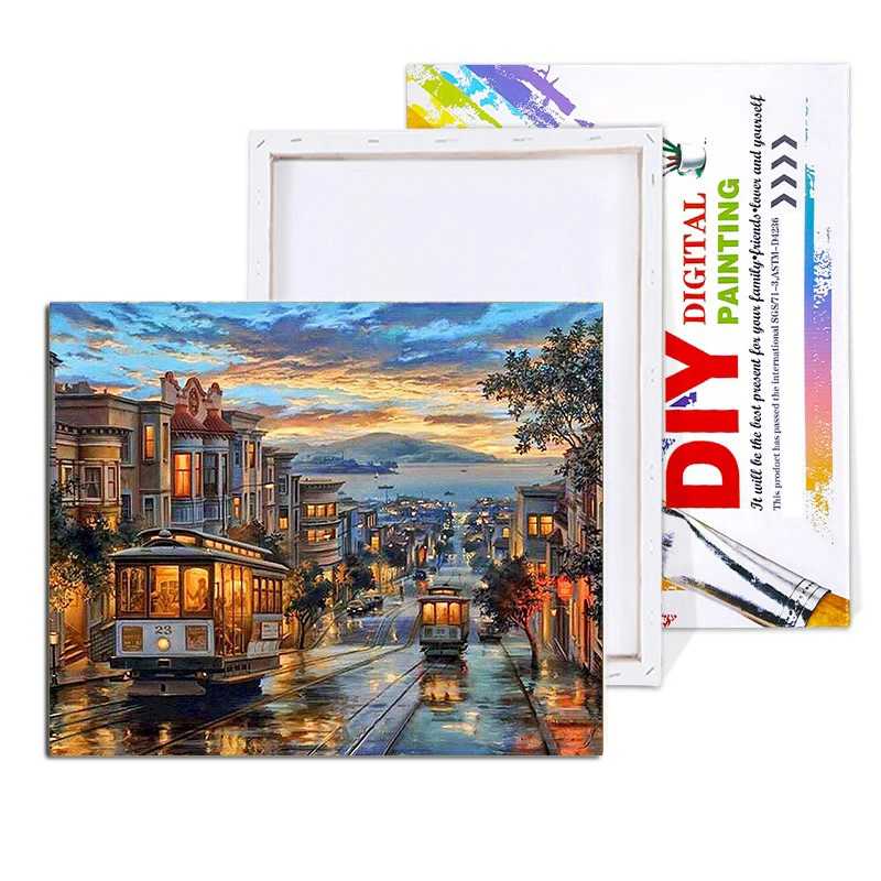 Раскрашивание по номерам городской пейзаж на холсте с рамкой для ри...