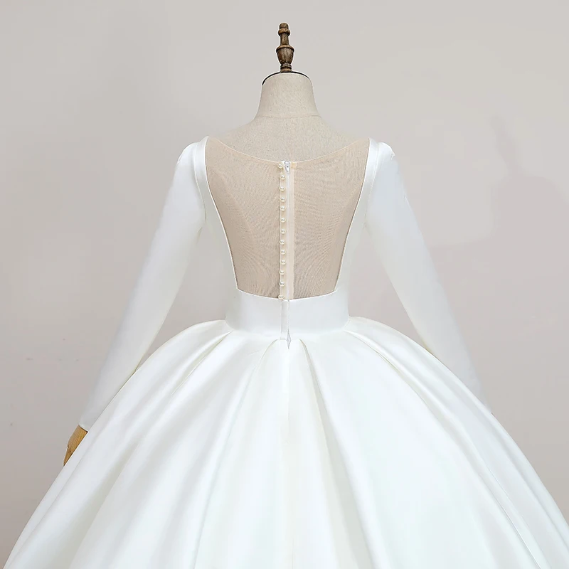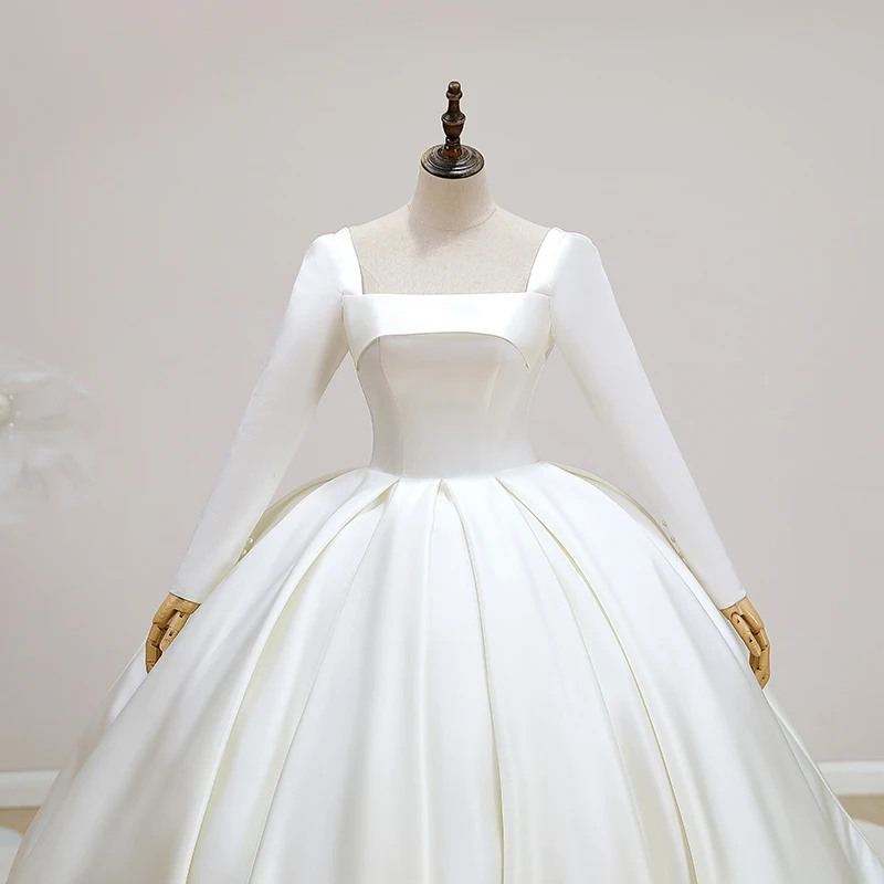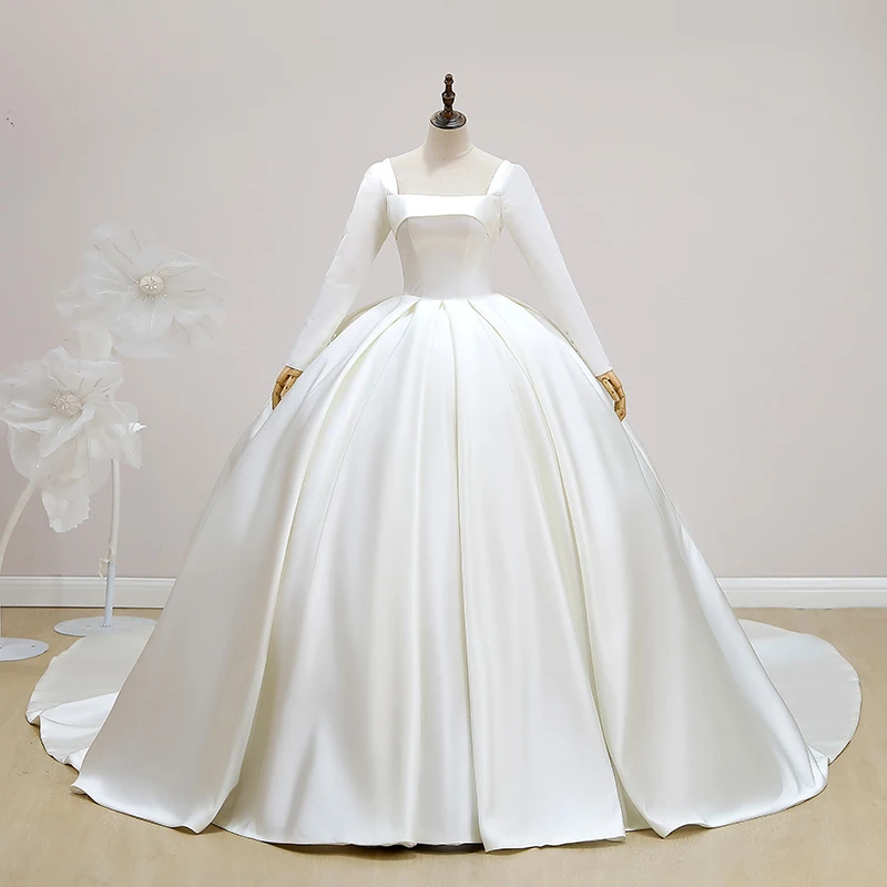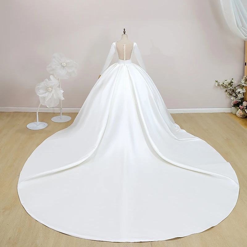 Женское атласное свадебное платье Fansmile, элегантное платье невесты со шлейфом и вырезом лодочкой, с длинным рукавом, модель 2021