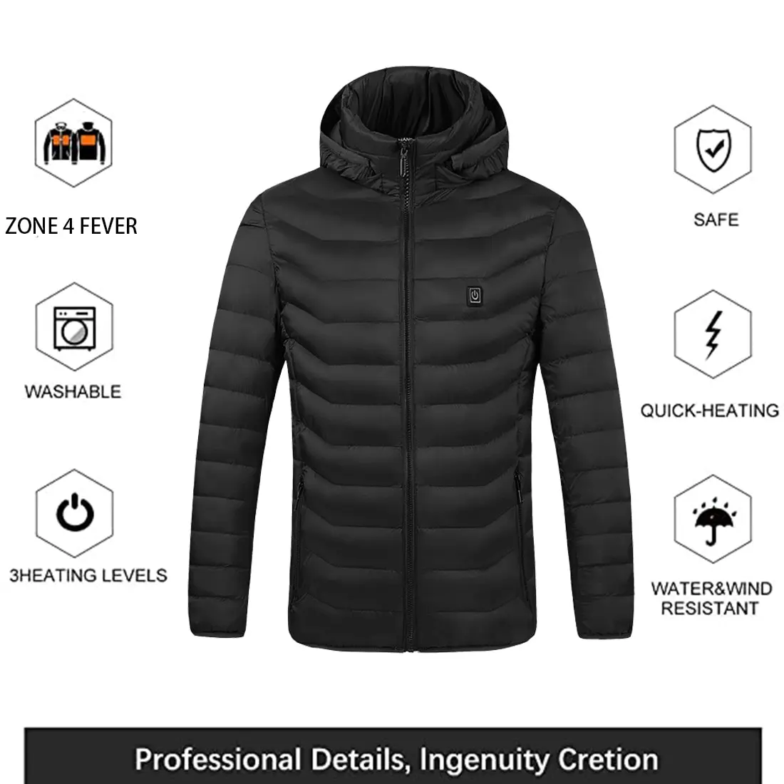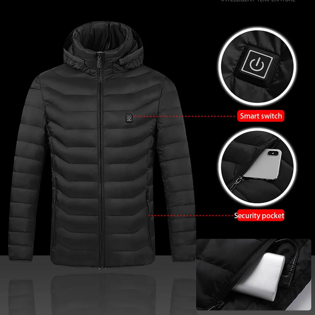 Парка мужская с подогревом, зимняя теплая куртка с USB-подогревом, с умным термостатом, с капюшоном, водонепроницаемая уличная Термоодежда