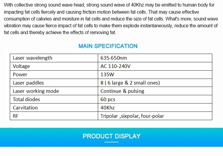 Особенности ультразвуковой кавитации:(1) разглаживает мелкие морщины, сокращает поры.(2) увлажняет кожу.(3) Улучшает лимфатическое и кровообращение.(4) избавьтесь от покраснения лица.(5) Устраняет медленные шрамы от акне.(6) способствует активации коллагена и клеток.(7) Улучшает активность и прочность кожи.(8) увеличивает скорость метаболизма, ускоряет выработку отходов и избыточной воды в организме.(9) уменьшение растяжек.(10) расслабляет мышцы, снимает мышечные спазмы и снимает мышечные боли.(11) для затягивания мышц рук, ног, бедер, ягодиц, нижней части спины, мышц брюшной полости, коррекции контура тела.(12) эффективно улучшает апельсиновую кожицу ягодиц и бедер, а также помогает в послеродовом или после эффектаЛипосакция в abdomособенности ультразвуковой кавитации:(1) разглаживает мелкие морщины, сокращает поры.(2) увлажняет кожу.(3) Улучшает лимфатическое и кровообращение.(4) избавьтесь от покраснения лица.(5) Устраняет медленные шрамы от акне.(6) способствует активации коллагена и клеток.(7) Улучшает активность и прочность кожи.(8) увеличивает скорость метаболизма, ускоряет выработку отходов и избыточной воды в организме.(9) уменьшение растяжек.(10) расслабляет мышцы, снимает мышечные спазмы и снимает мышечные боли.(11) для затягивания мышц рук, ног, бедер, ягодиц, нижней части спины, мышц брюшной полости, коррекции контура тела.(12) эффективно улучшает апельсиновую кожицу ягодиц и бедер, а также помогает в послеродовом или после эффектаЛипосакция в области живота