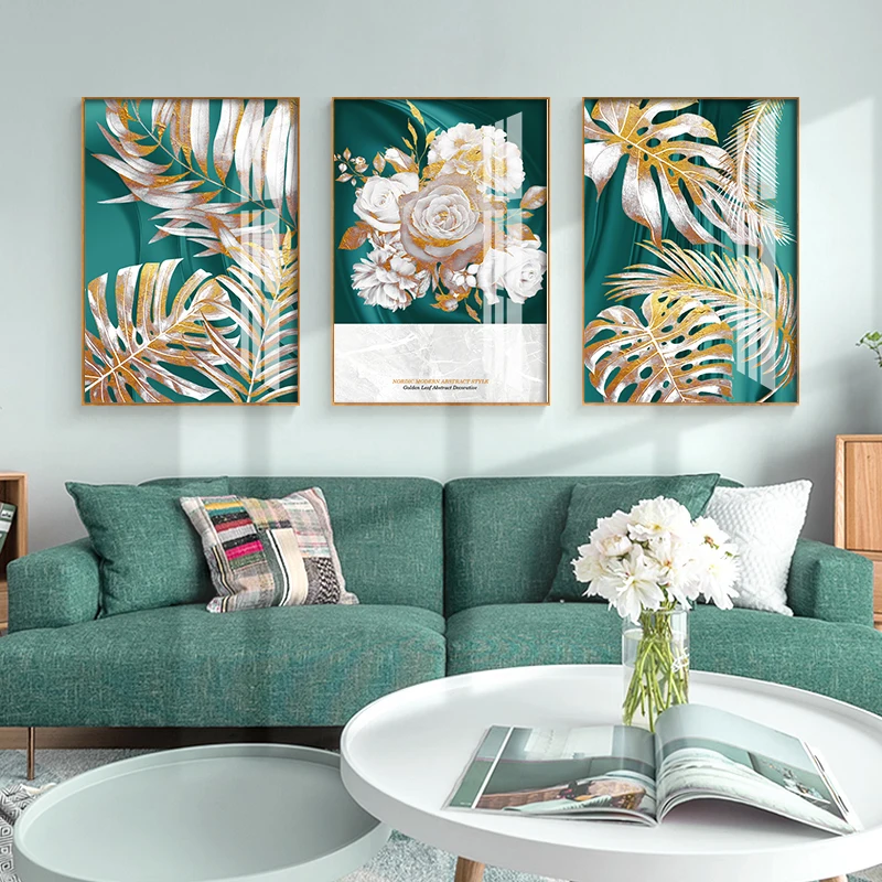 Позолоченная картина с золотыми цветами в скандинавском стиле, наст...