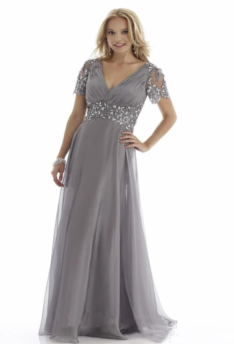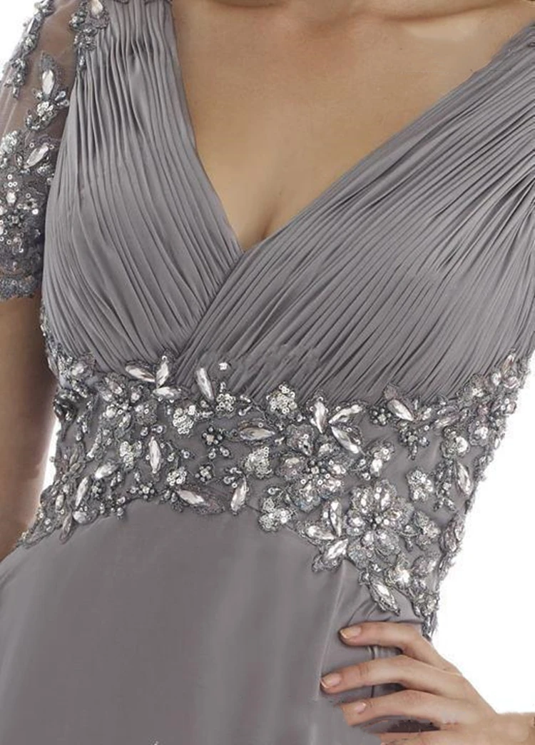 Элегантный серый размера плюс платья для матери невесты с украшением в виде кристаллов шифоновые складки оборками Короткие рукава шифон Вечерние платья