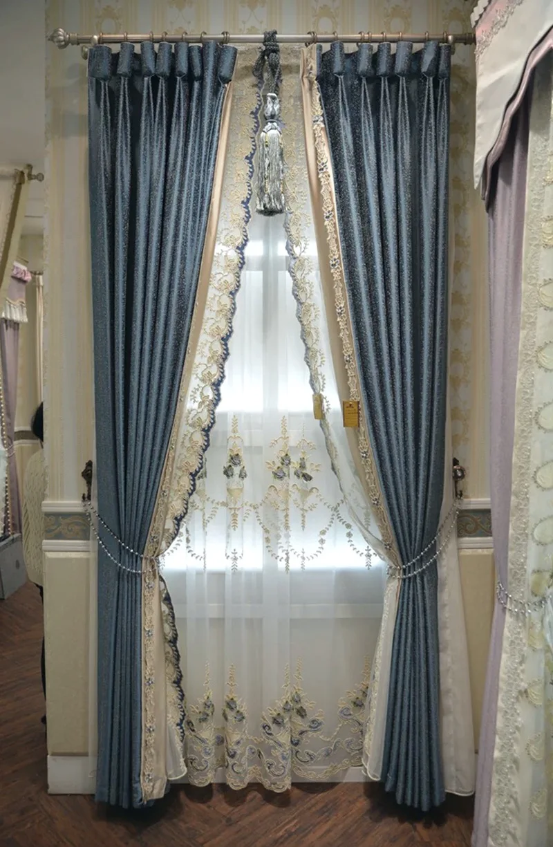 Занавески на заказ, неоклассические европейские Синие Роскошные одн...