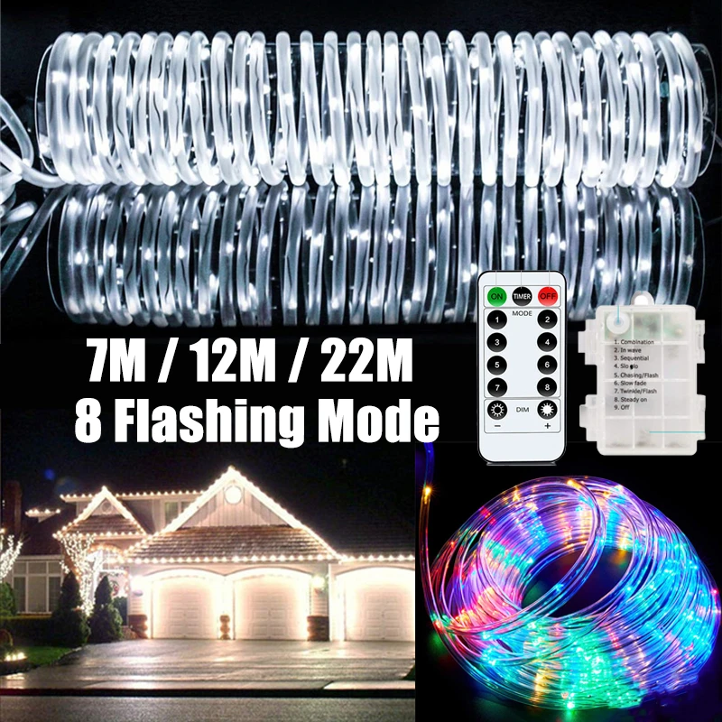 Светодиодный ная веревочная лента на солнечной батарее, веревочная гирлянда уличные, комнатные, садовые, рождественские украшения, 12 м, 22 м