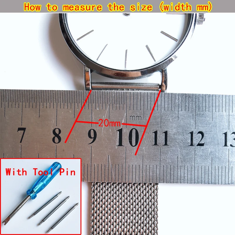 Совет: прежде чем отправить ваш заказ, вам нужно измерить размер вашего интерфейса часов. Вам нужно убедиться, что вы знаете необходимый вам размер. Ремешок мы отправляем с помощью инструмента и штифта!