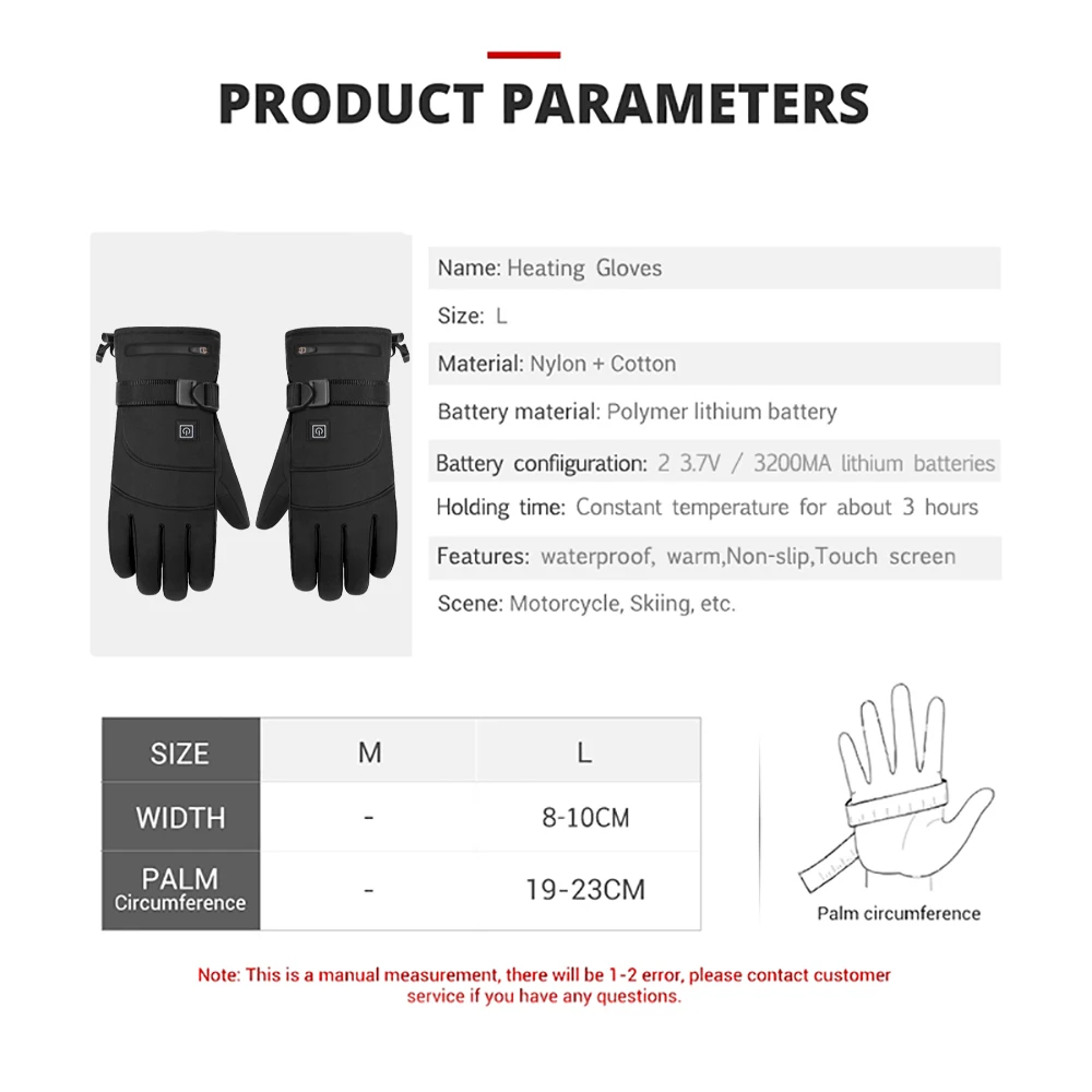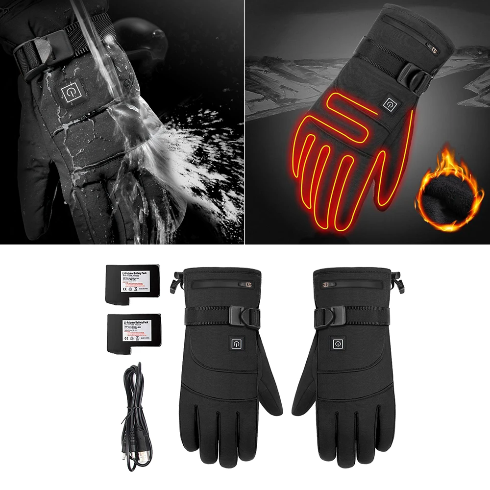 Уличные зимние перчатки, мотоциклетные перчатки с подогревом, перчатки с сенсорным экраном на батарейках, водонепроницаемые перчатки с закрытыми пальцами, термоперчатки, 2 шт.