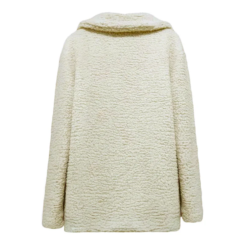 Однотонная Женская осенне-весенняя куртка с широким отворотом, свободная теплая куртка, верхняя одежда, Женский Повседневный джемпер, женское свободное Смешанное пальто из искусственного меха для дам
