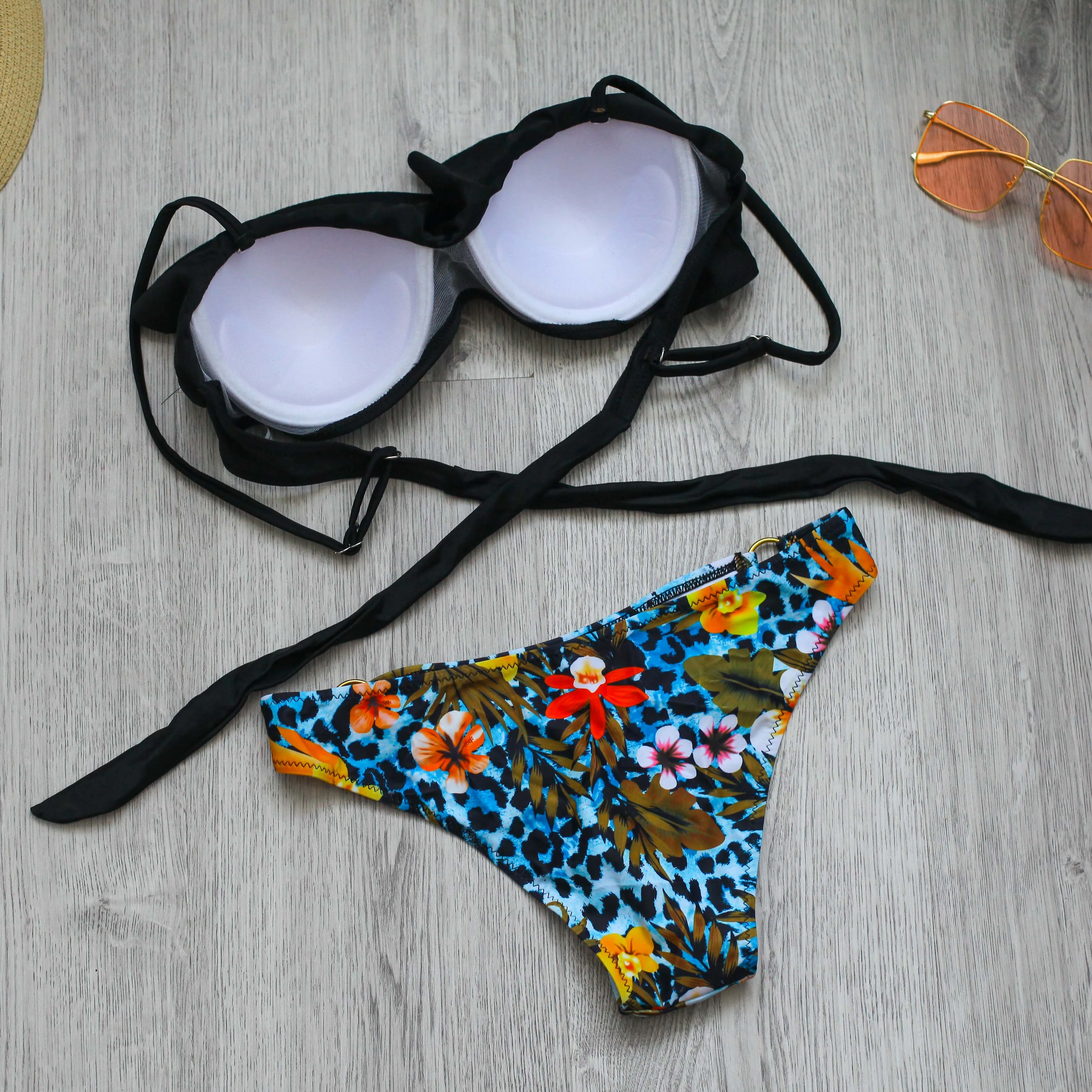 Купальник женский с чашками пуш-ап, пикантный бикини с цветочным пр...