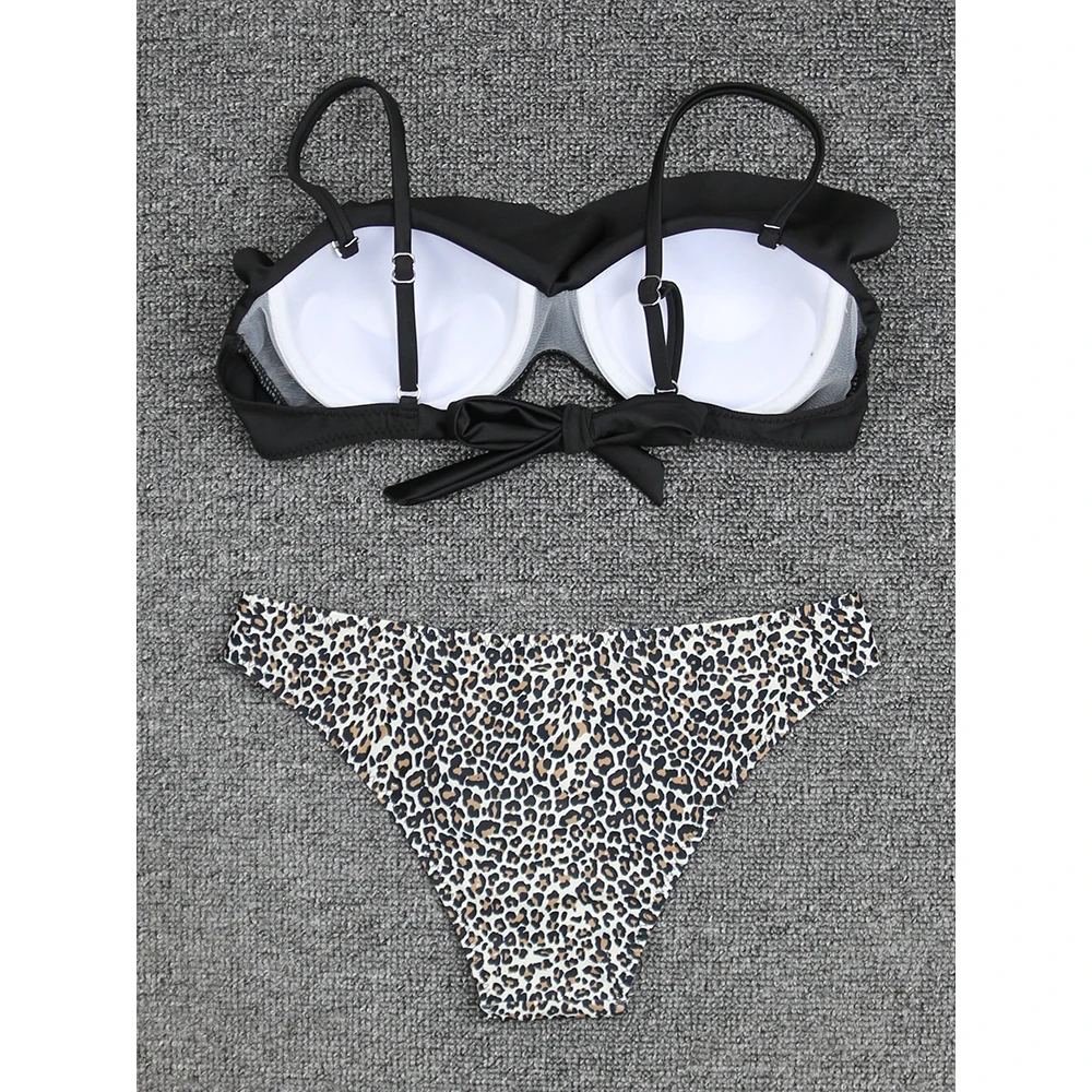 Женский купальник с леопардовым принтом, купальный костюм из двух п...