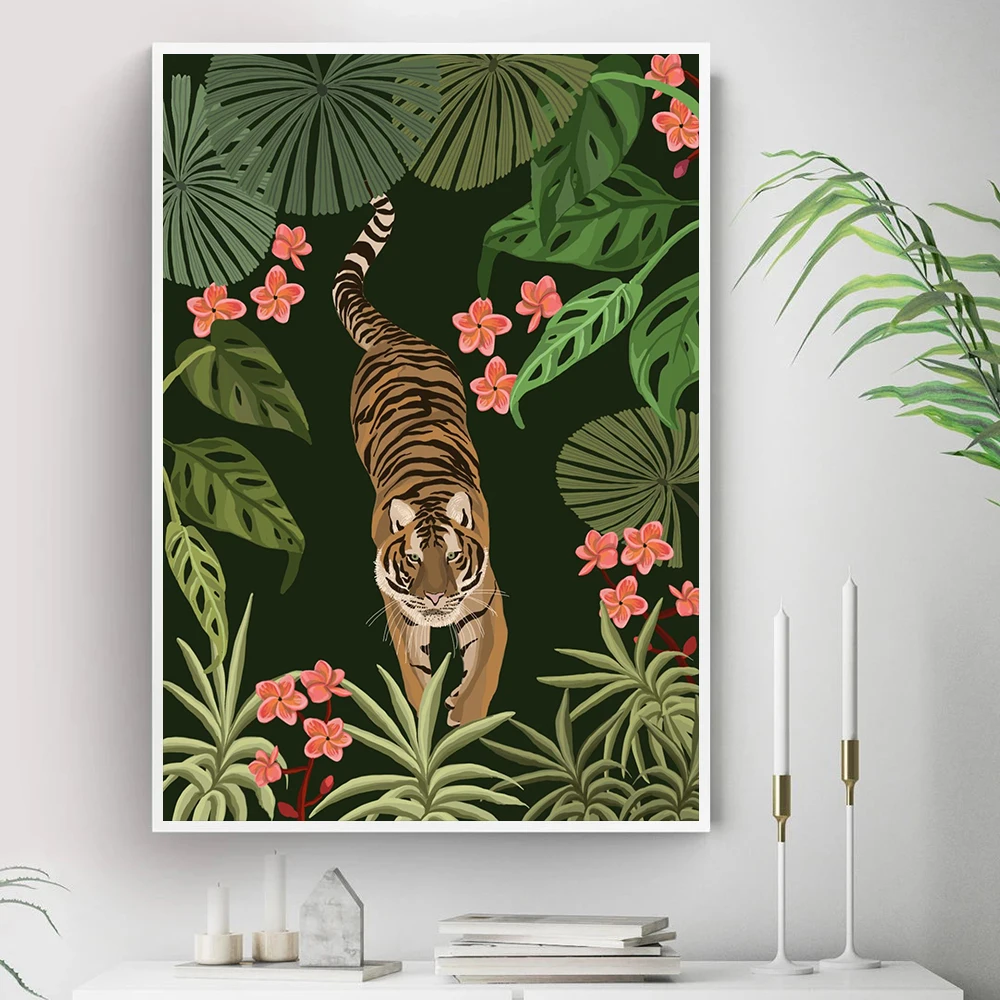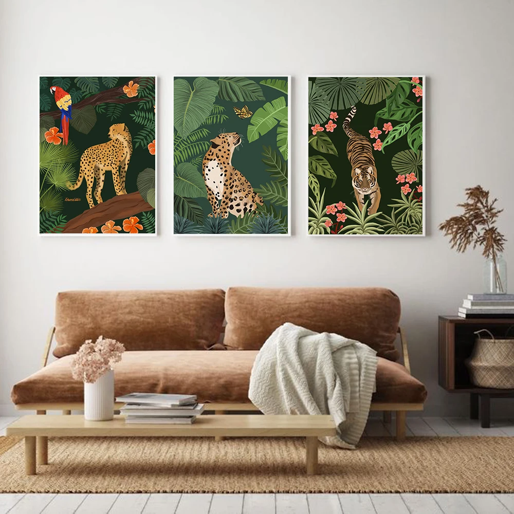 Плакаты и картины в скандинавском стиле с гепардом, левом, тигром, леопардом, джунглями, настенная живопись на холсте для гостиной, домашний декор