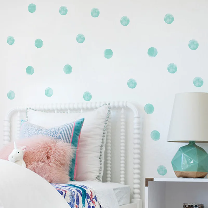1 лист акварель синий зеленый горошек Наклейки на стены круги ручной рисунок наклейки на стены для детской комнаты детская комната украшение дома