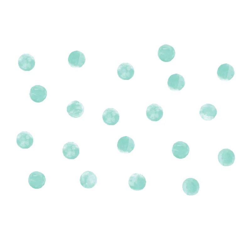 Акварельные мятно-зеленые наклейки в горошек, декор для детской ком...