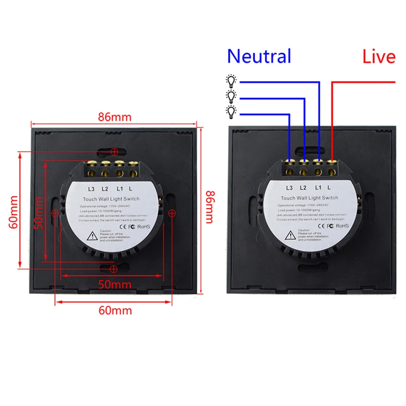 *** Примечание: *** *** Этот переключатель не является переключателем wifi *** Этот переключатель не является переключателем wifi *** Этот выключатель используется только для электрических ламп, а не для вентиляторов. *** Светодиодный индикатор нагрузки на лампу менее 100 Вт/комплект. *** Энергосберегающая лампочка нагрузки shoule быть менее 100 Вт/комплект. Тип: сенсорный выключатель Цвет: черный/белый/серебристый/золотистый Материал панели: стеклянная панель Размер панели: 86 Тип: 86 мм * 86 мм ✔*** Рабочее напряжение: 90 ~ 250 В ✔*** Мощность нагрузки: 0 ~ 300 Вт/комплект ✔Если он используется для светодиодный лампы или энергосберегающей лампы, мощность нагрузки должна быть менее 100 Вт/комплект. -Упрочненная стеклянная панель, не выцветает, элегантный и стильный -Сенсорное управление обеспечивает более длительный срок службы, чем механический переключатель -Новый импортный Процессор IC для хорошей чувствительности и стабильной производительности -Управление одним проводом в режиме реального времени, простота установки, не требуется перепроводка и Замена выключателя перед прямой установкой -Гуманизированная конструкция, выключатель может автоматически отключаться при отключении электричества, и он будет находиться в выключенном месте, когда электричество вернется Посылка включает в себя: 1 х сенсорный переключатель 2 винта 1 x Руководство пользователя