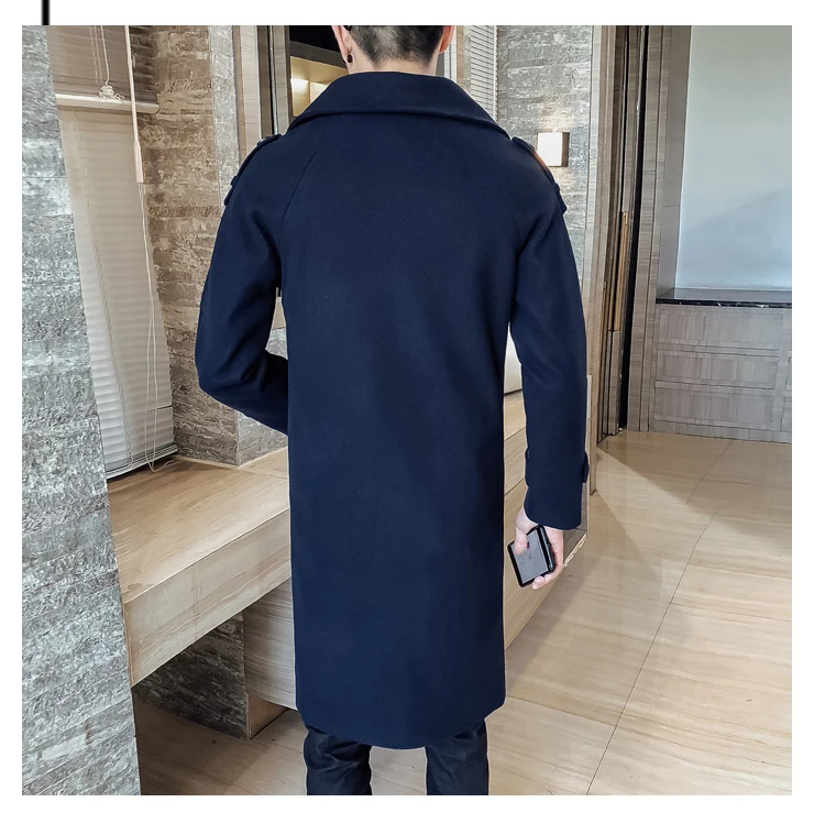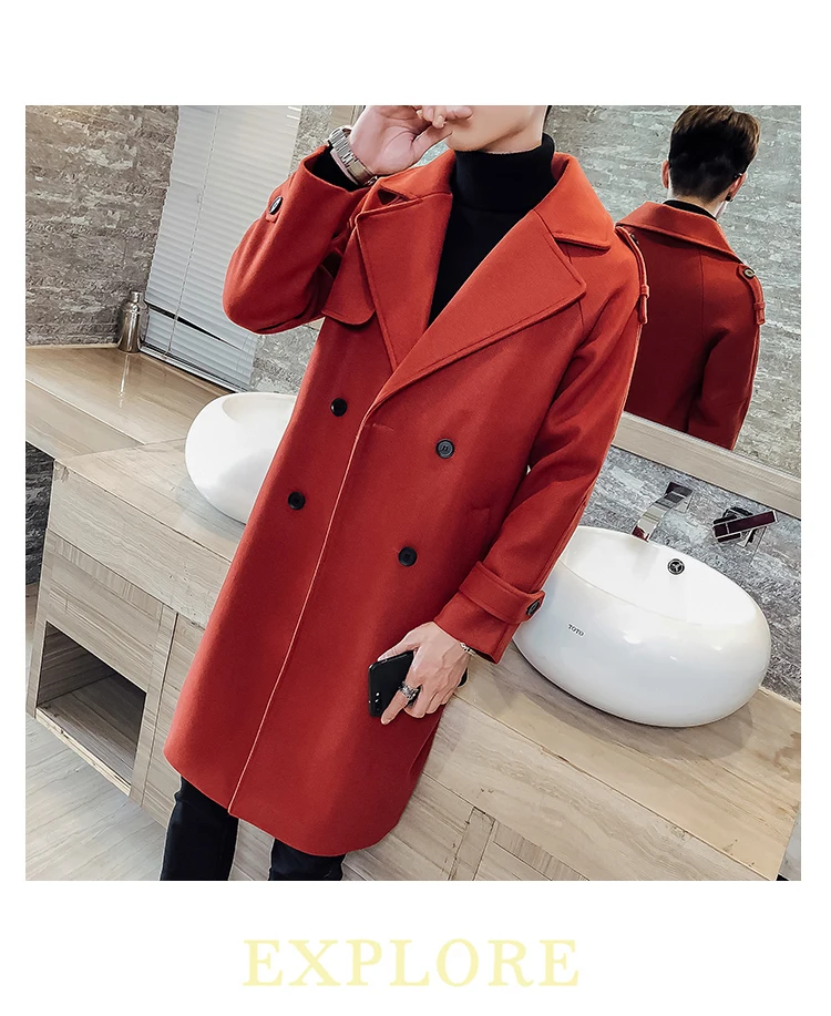 Модная зимняя мужская классическая Куртка, модные тренчи, черный карамельный армейский зеленый мужской длинный Тренч, облегающее пальто, мужские пальто