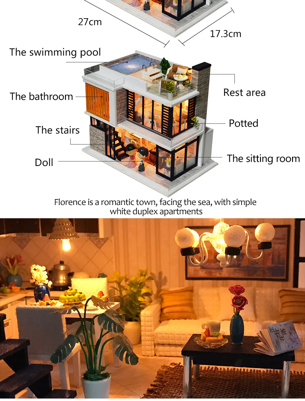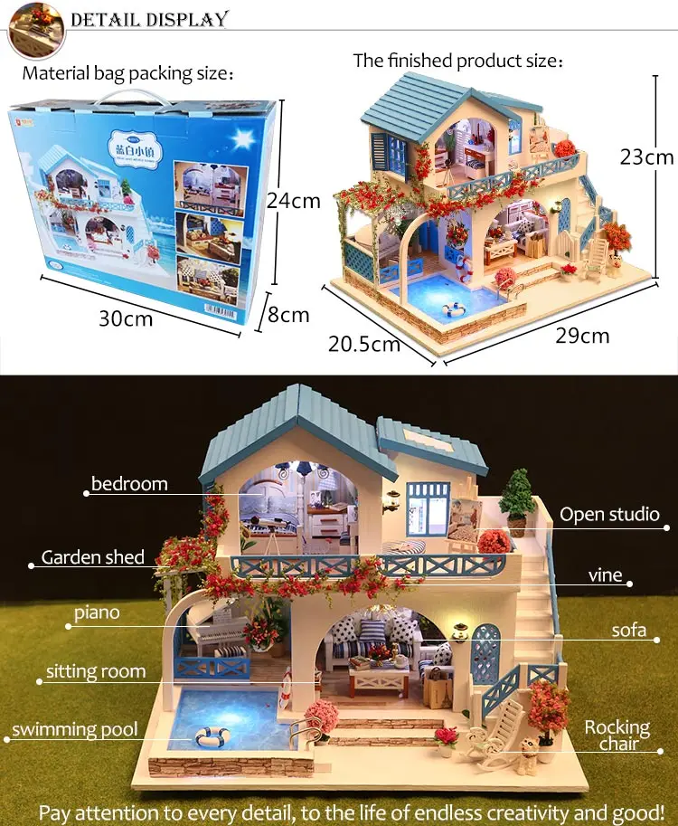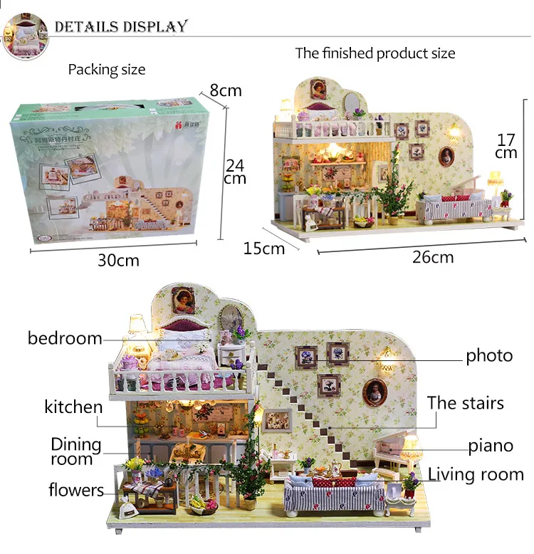 Фото показывает готовый кукольный домик, но вы получаете запасные части, построить самостоятельно!