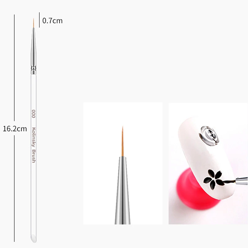 3 шт.компл. колонковая кисть для ногтей, кристаллый акриловый тонкая ручка-лайнер для рисования картины в полоску и в цветочек маникюрные инструменты для ногтей