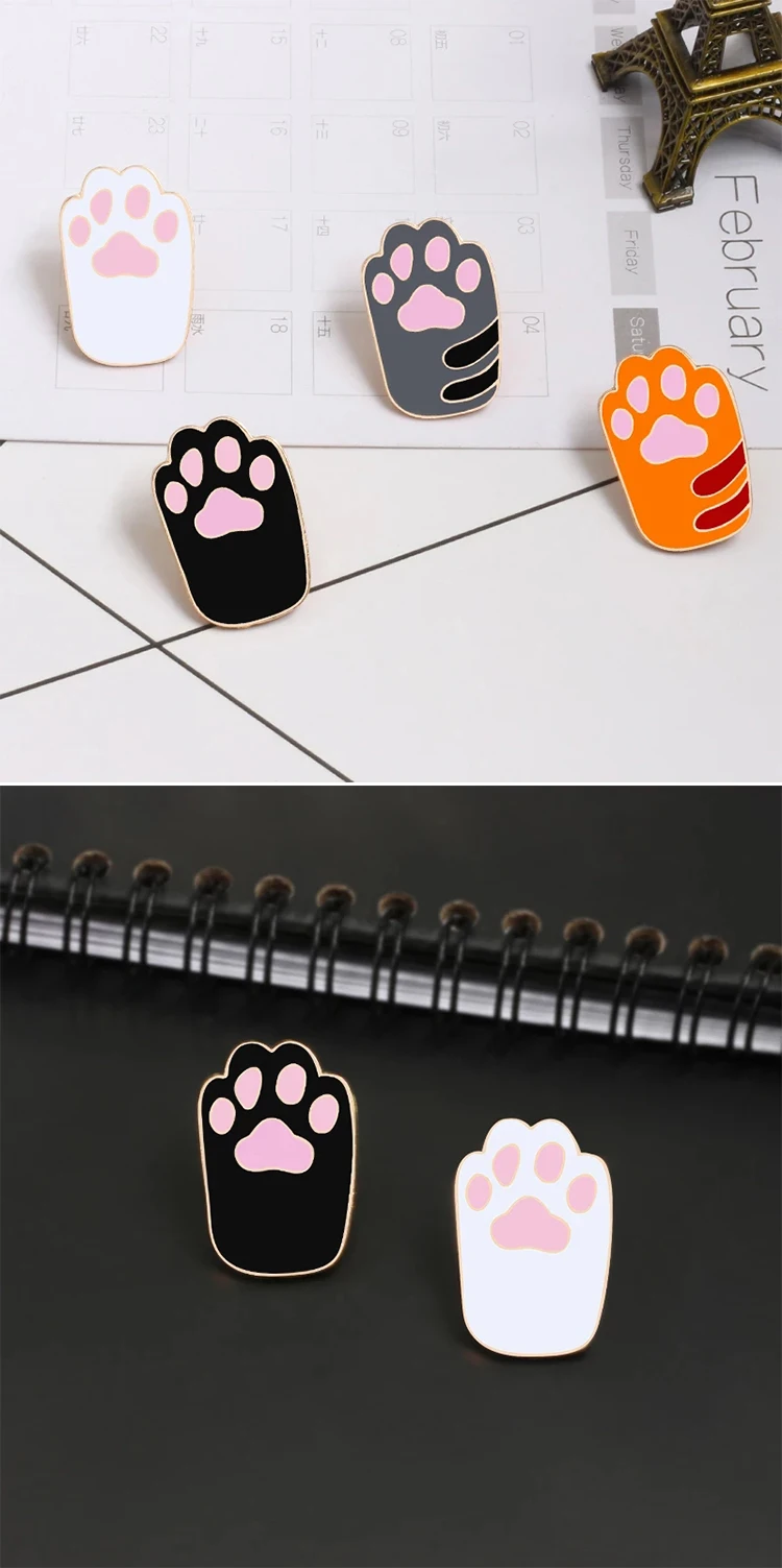 Эмалированный значок в виде кошачьей лапы, мешочек для брошек, с отпечатками ног