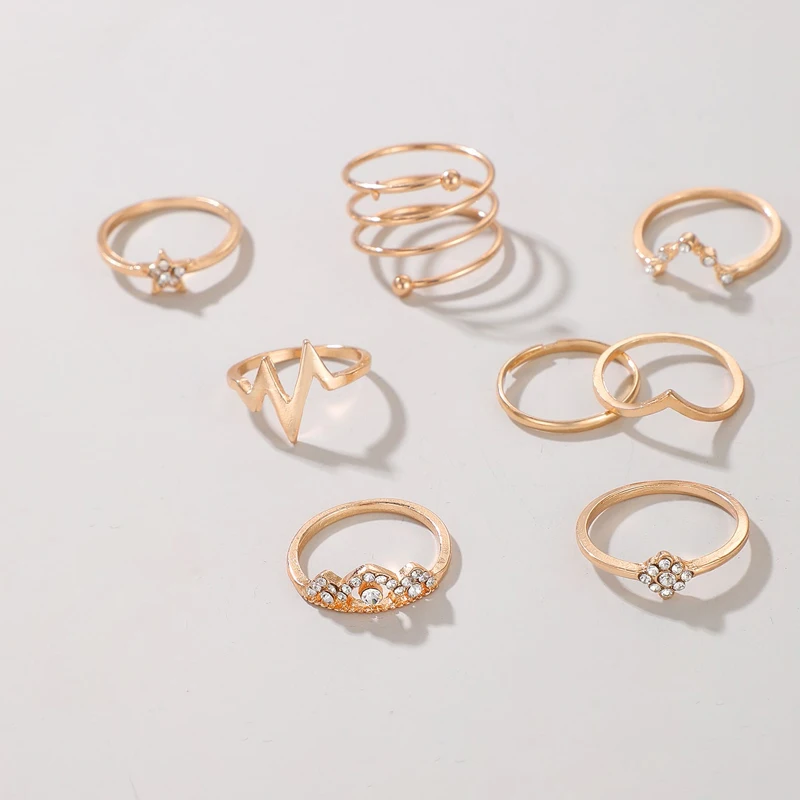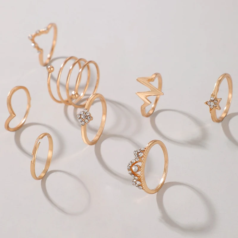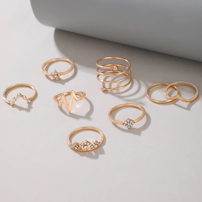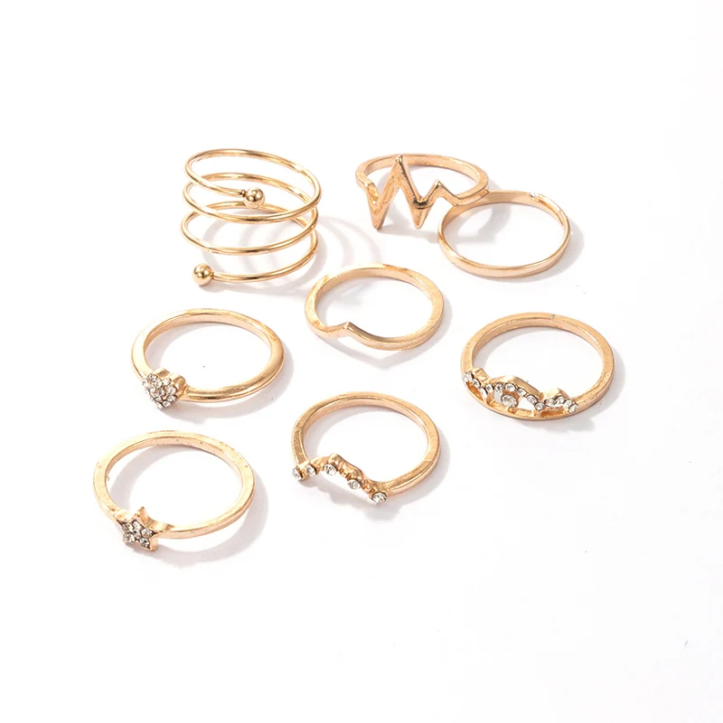 Tocona 8 шт.компл. Роскошная обувь с украшением в виде кристаллов Камень звезда кольцо наборы для ухода за кожей для Для женщин Подвески волны геометрические золотые украшения из металлического сплава подарок 15124